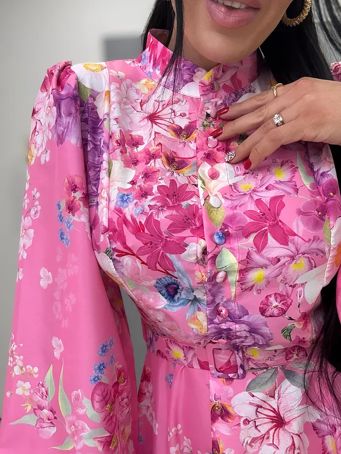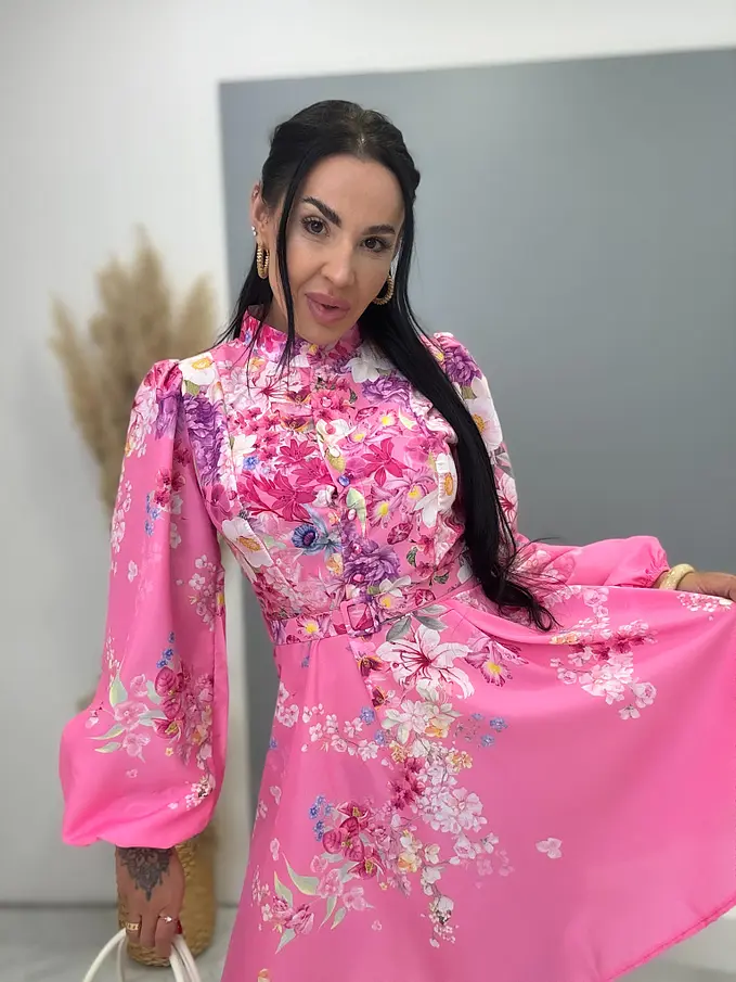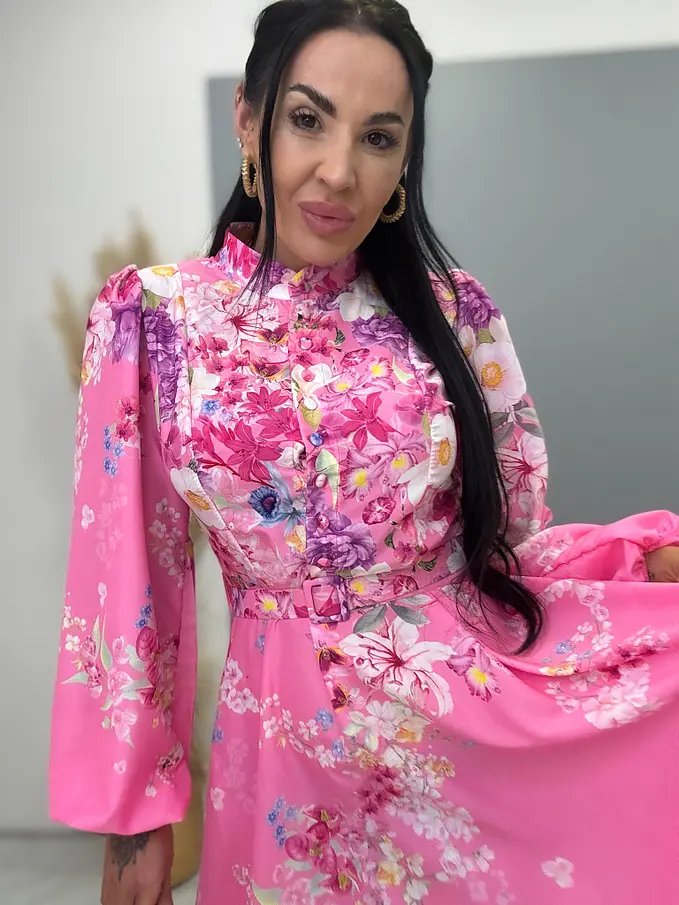 Kvetované šaty na gombíky s opaskom SUMMER