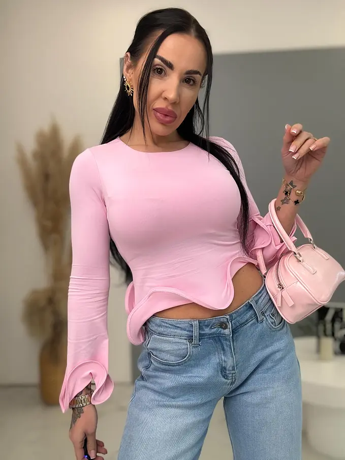 Asymetrický top s tvarovanými volánmi. Špeciálny kúsok, ktorý oživí každý outfit.