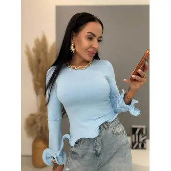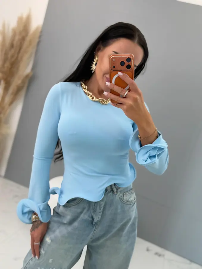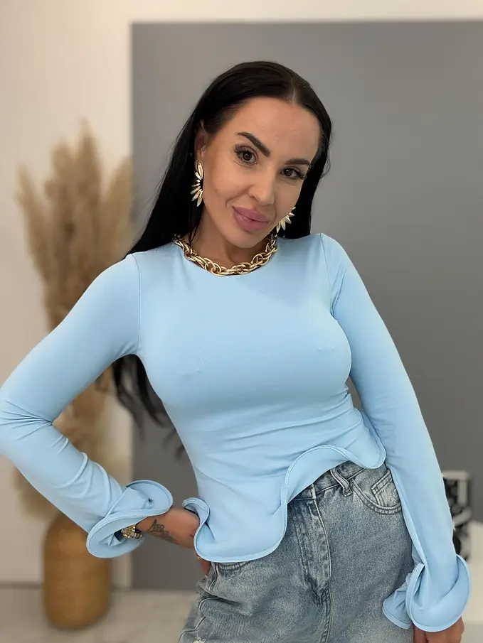 Asymetrický top s tvarovanými volánmi. Špeciálny kúsok, ktorý oživí každý outfit.
