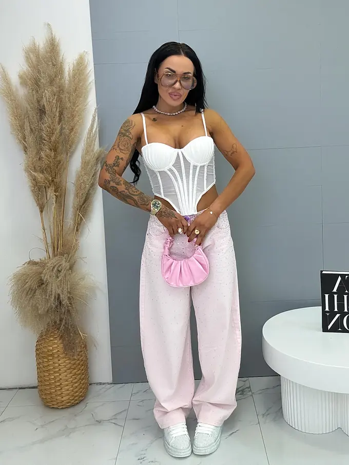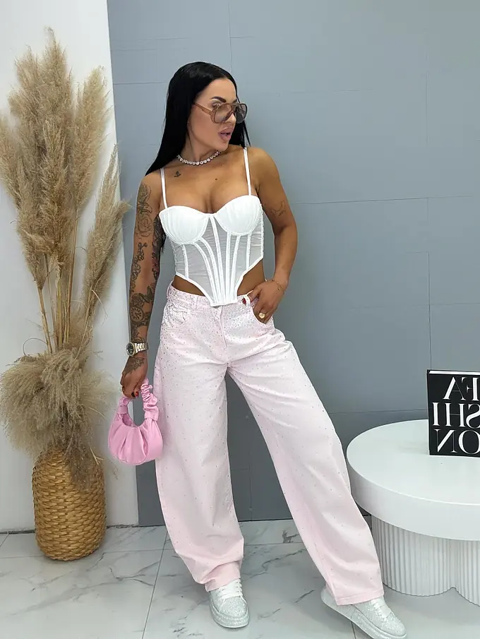 Balloon baby pink elastické rifle s kamienkami BELLA