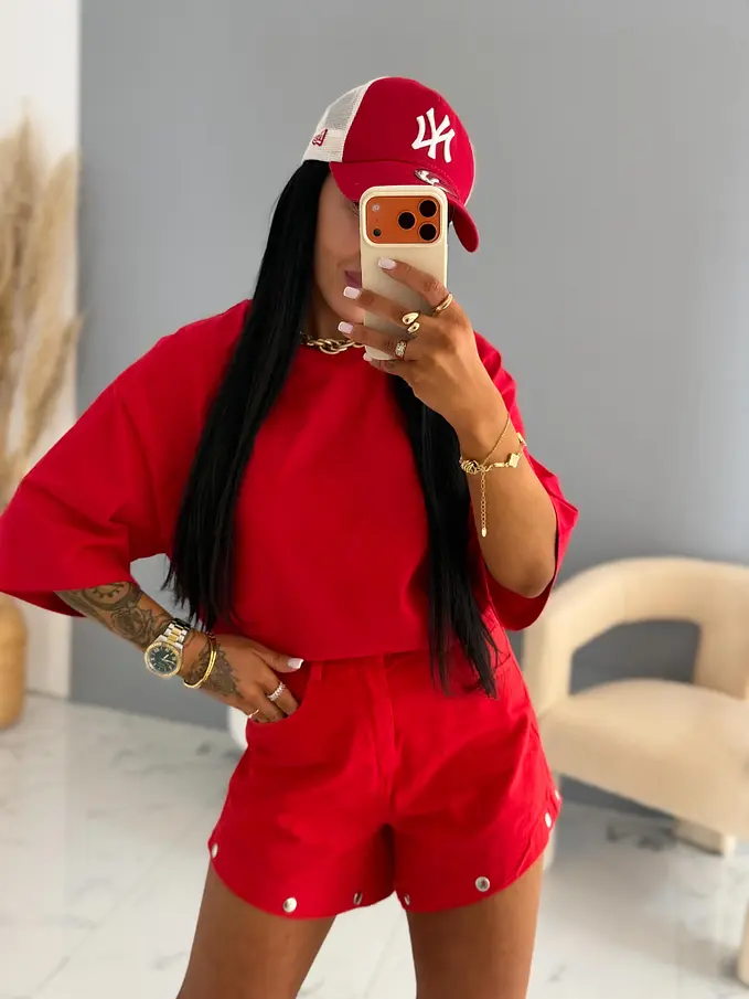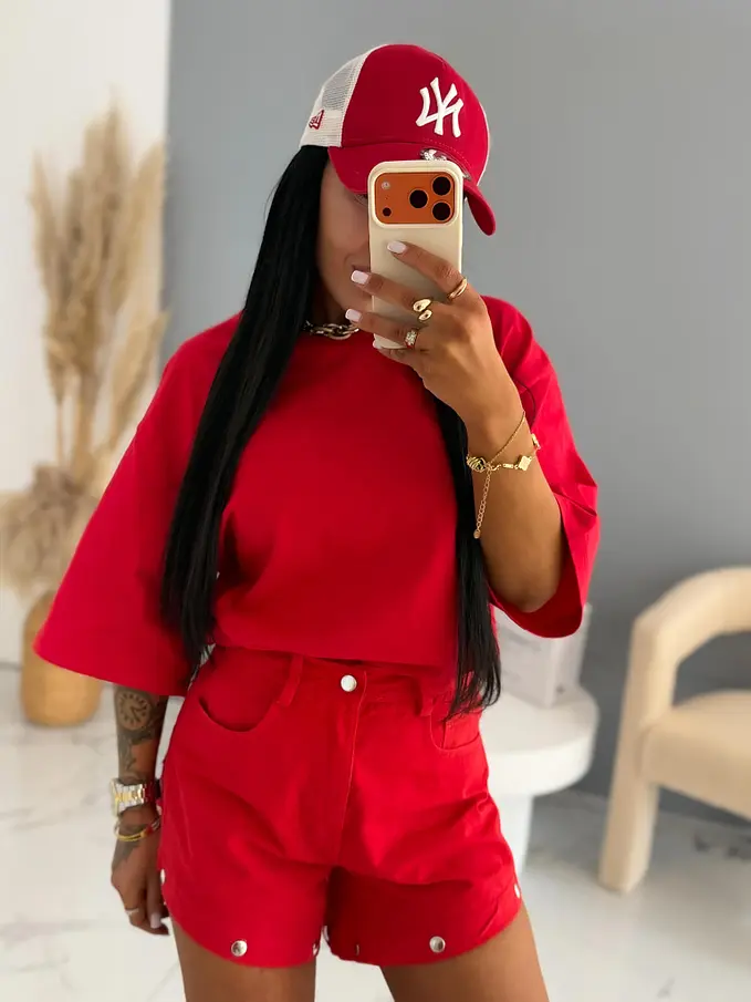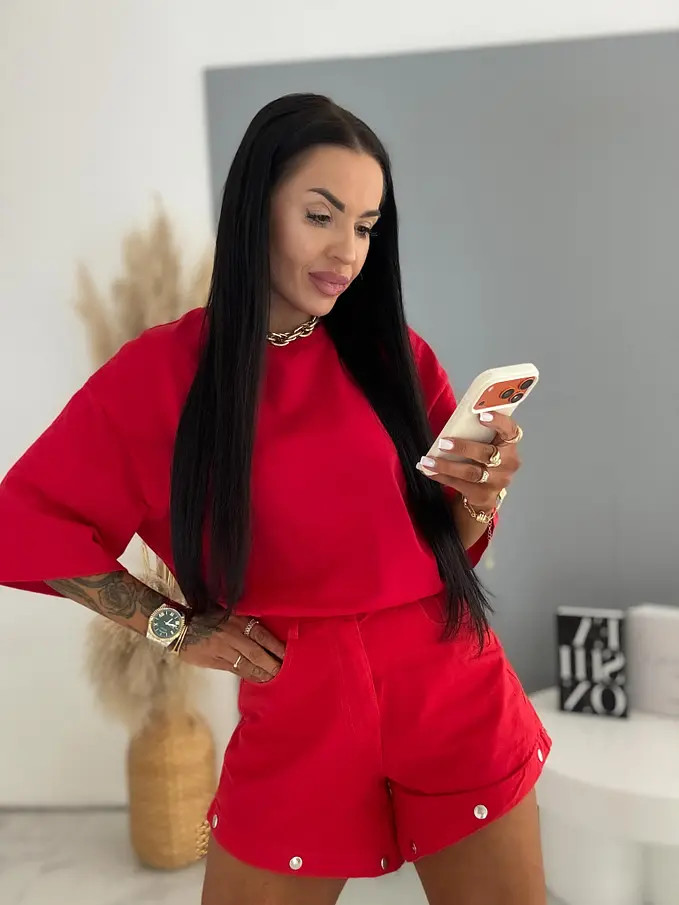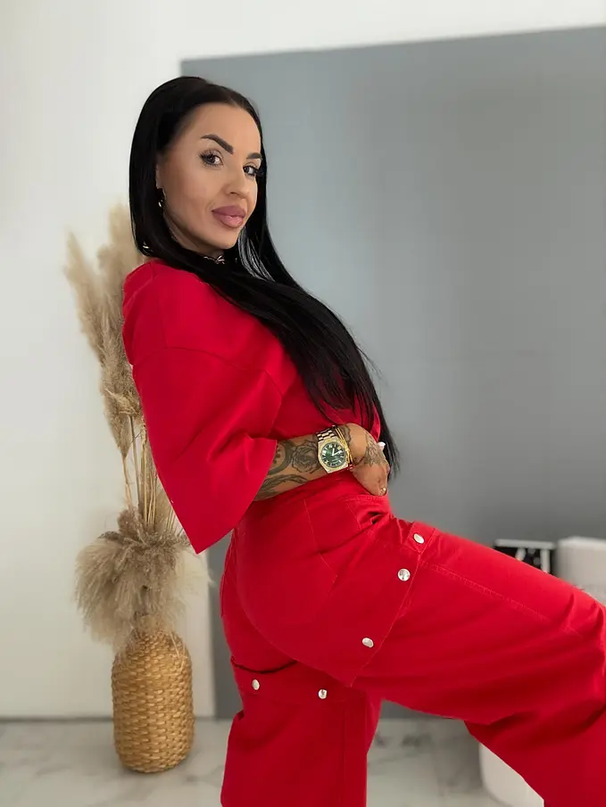 Modelka je 164 cm a váži 57 kg. Má na sebe veľkosť S