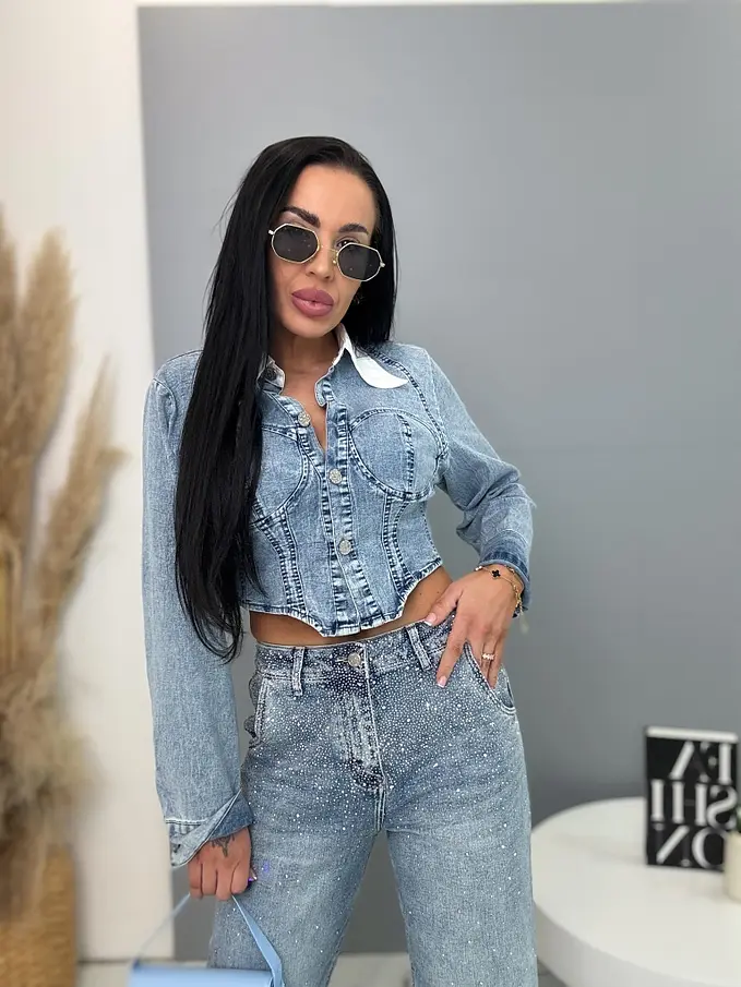 Modelka je 164 cm a váži 57 kg. Má na sebe veľkosť S