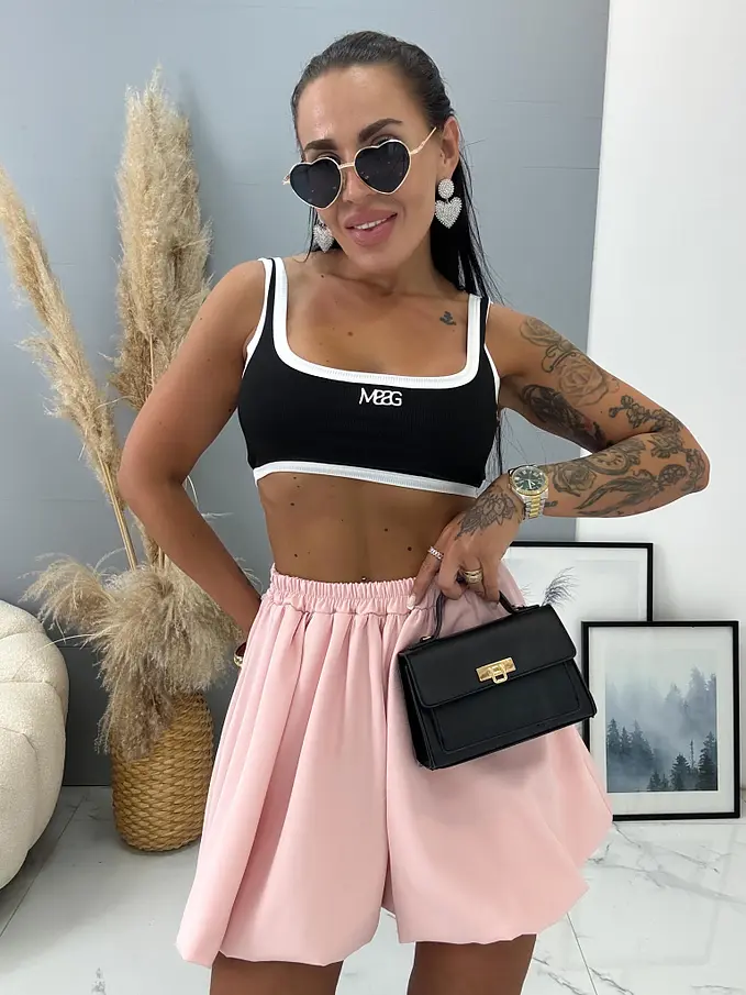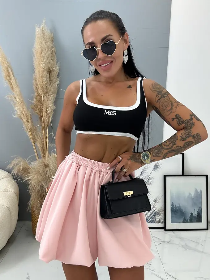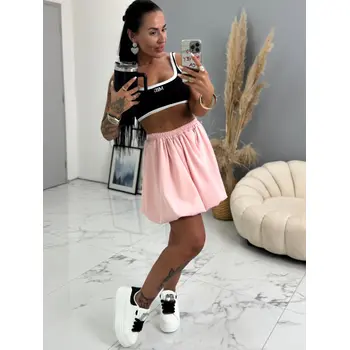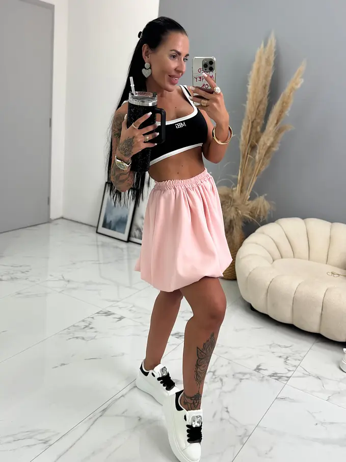 Modelka čiernovláska meria 164 cm a váži 57 kg. Nosí veľkosť S.