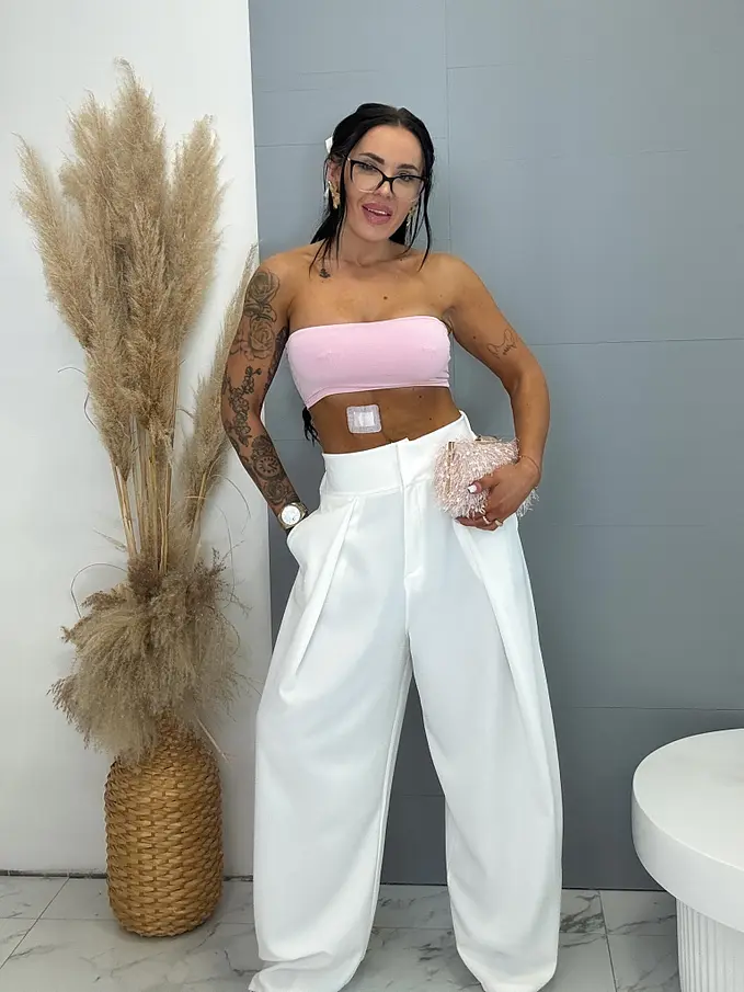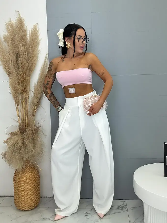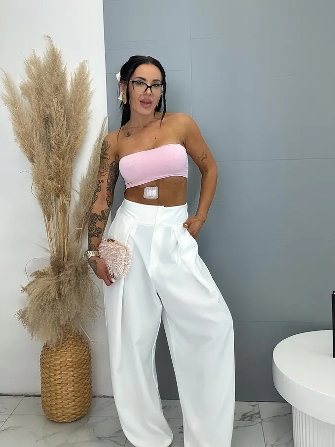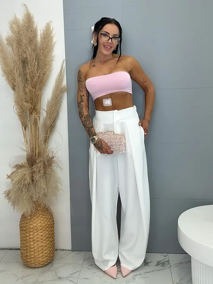 Prémiovej kvality talianske nohavice balónového strihu s elastickou zadnou časťou, zapínanie na gombík.