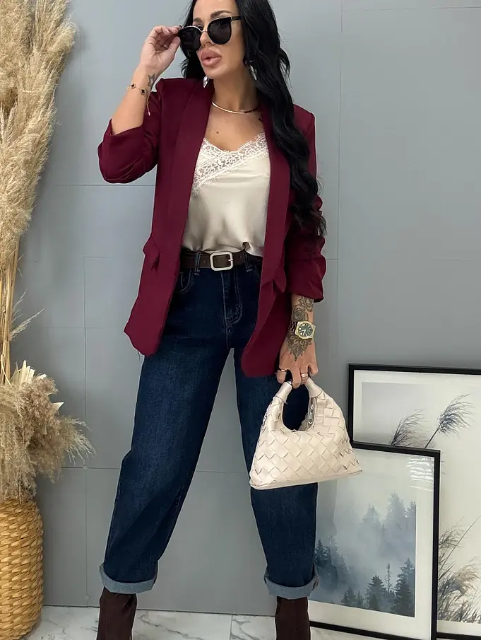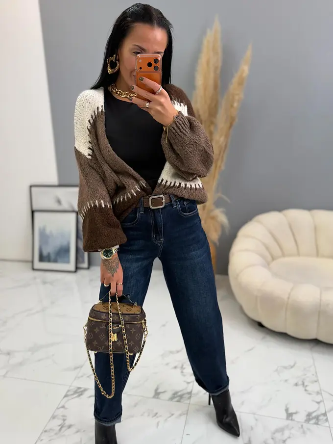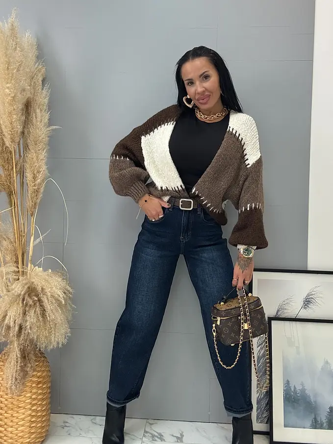 Modelka čiernovláska meria 164 cm a váži 57 kg. Nosí veľkosť XS.