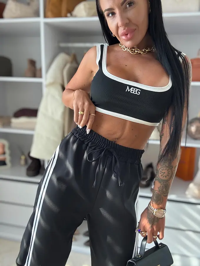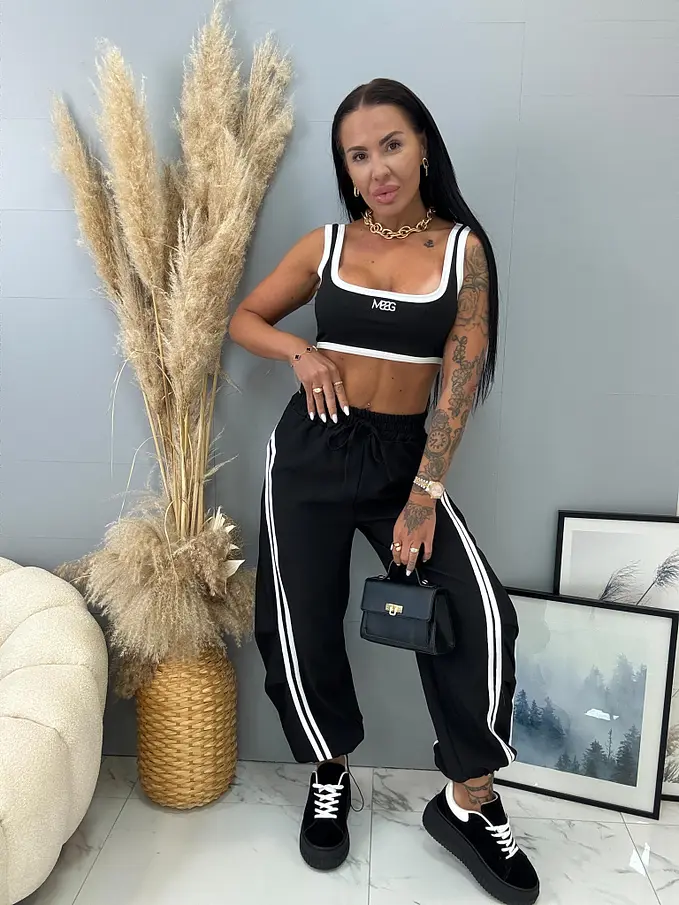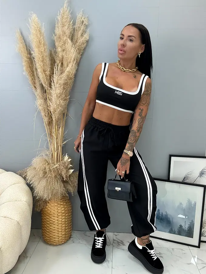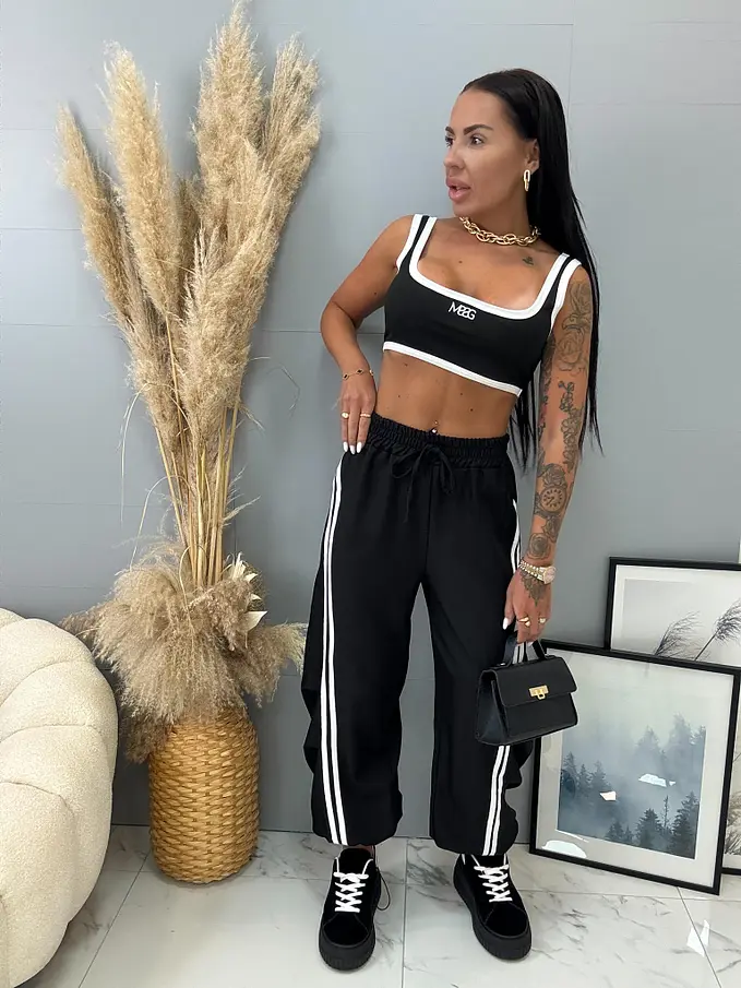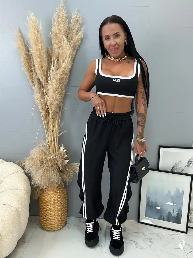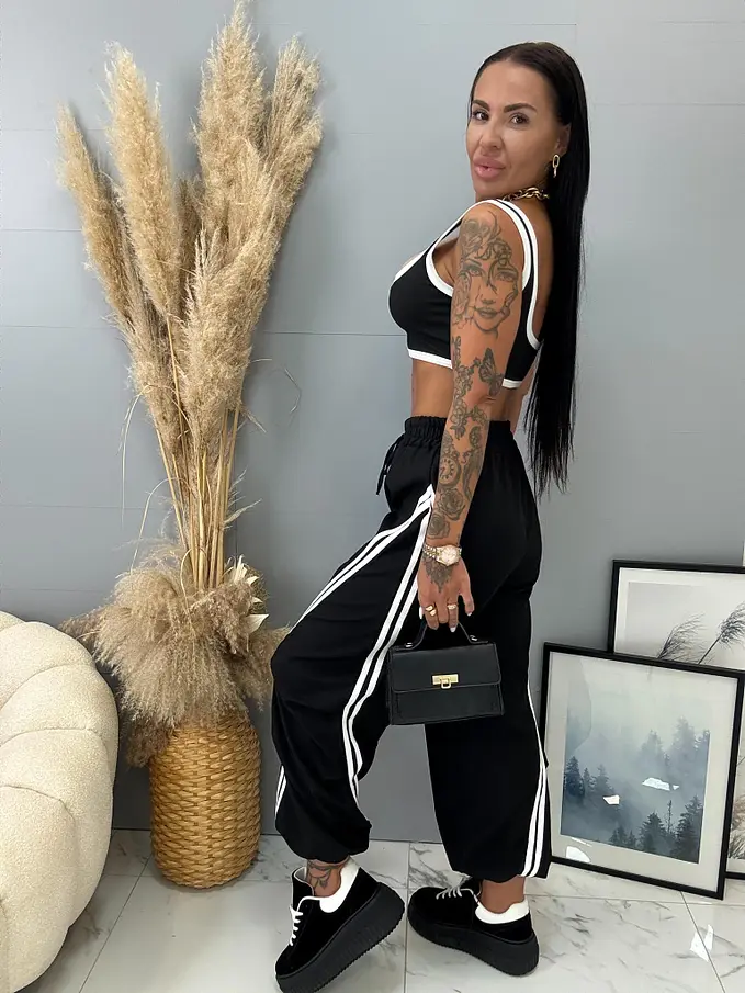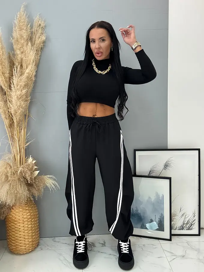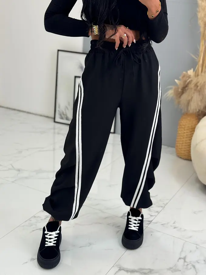 Nohavice sú vyrobené z príjemného materiálu. So bočnými vreckami a gumeným pásom. Nohavice sa dajú stiahnuť dole pri členkoch.