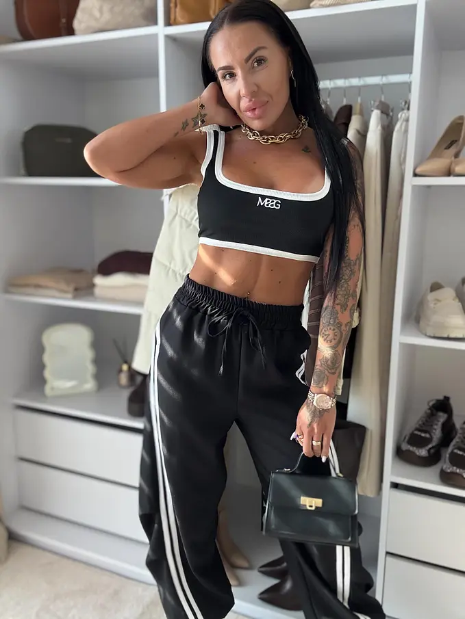 Modelka čiernovláska meria 164 cm a váži 57 kg. Nosí veľkosť S/M