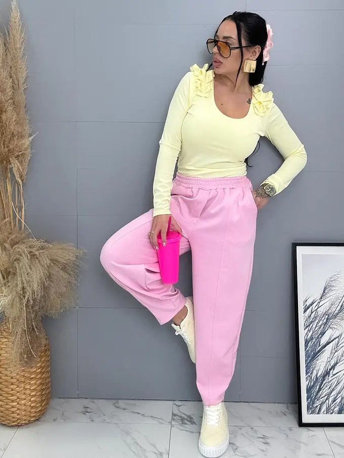 Nohavice sú vyrobené z príjemného materiálu. So bočnými vreckami a gumeným pásom.
