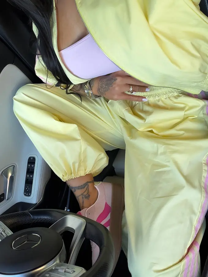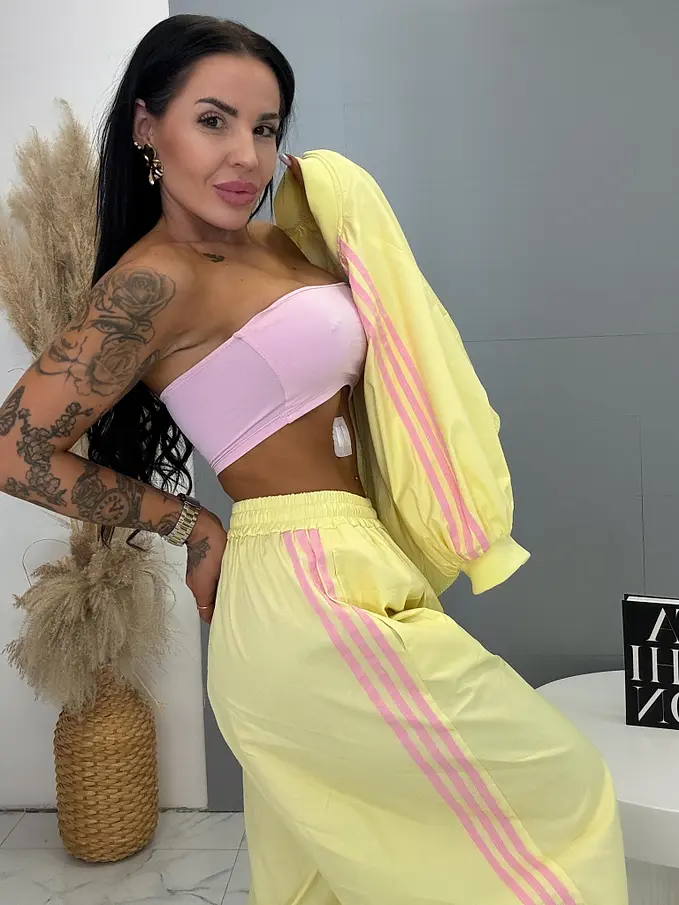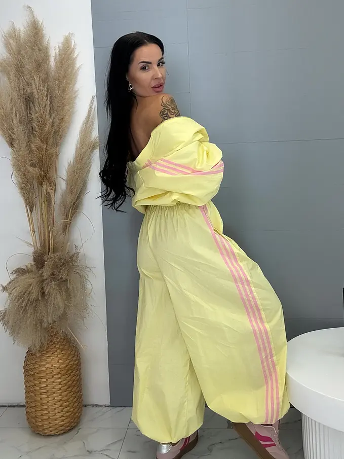 Nohavice sú vyrobené z príjemného materiálu. So bočnými vreckami a gumeným pásom. Nohavice sa dajú stiahnuť dole pri členkoch.