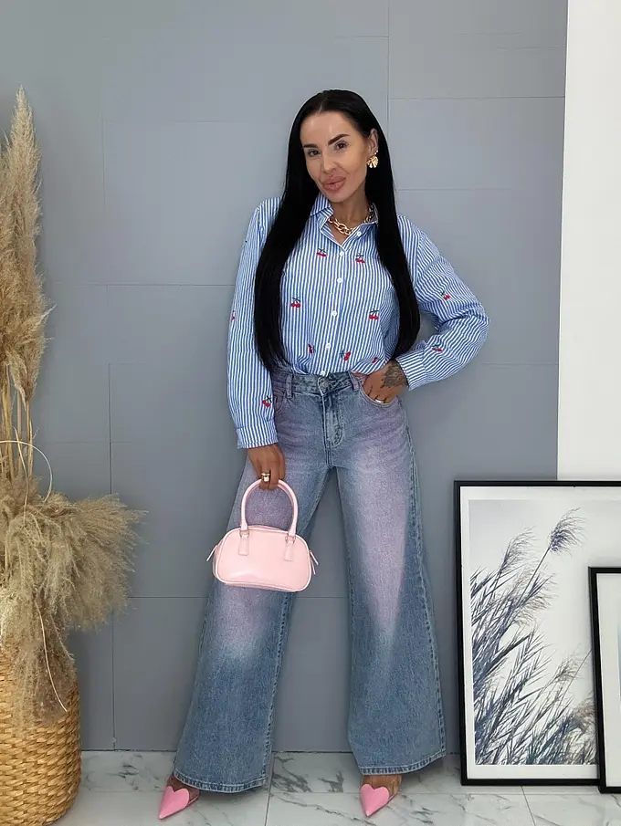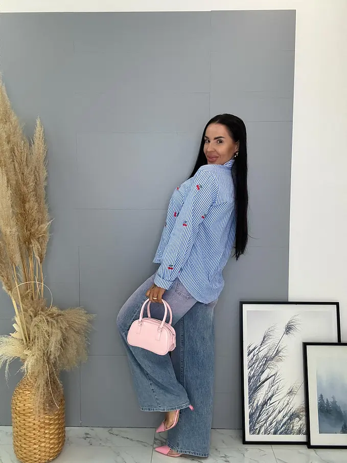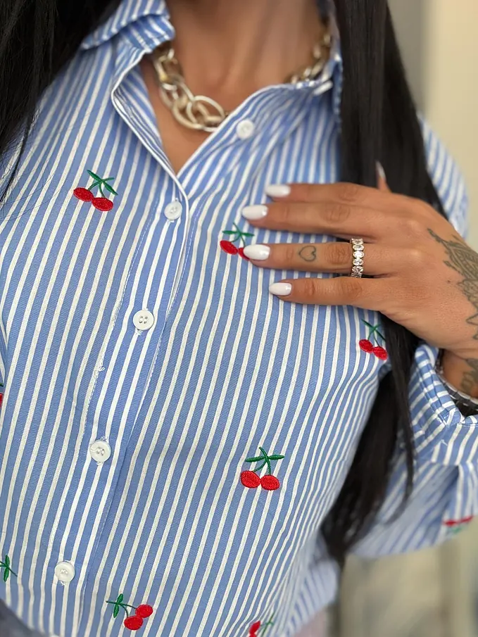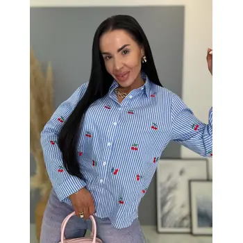 Bavlnená pásikavá košeľa s čerešňovou výšivkou CHERRY