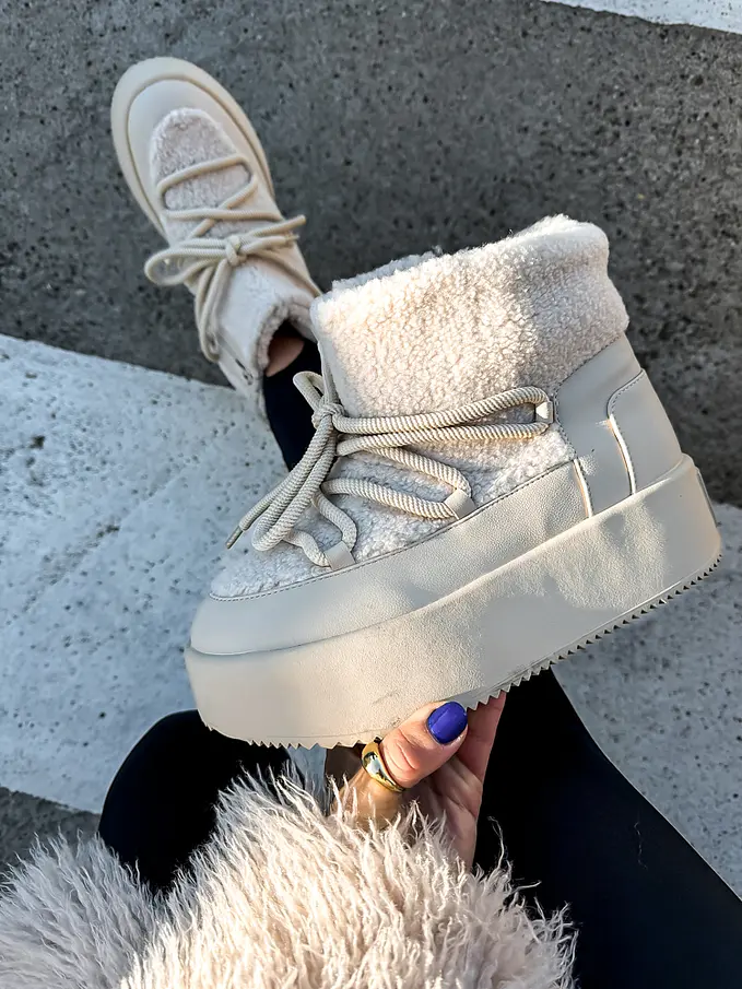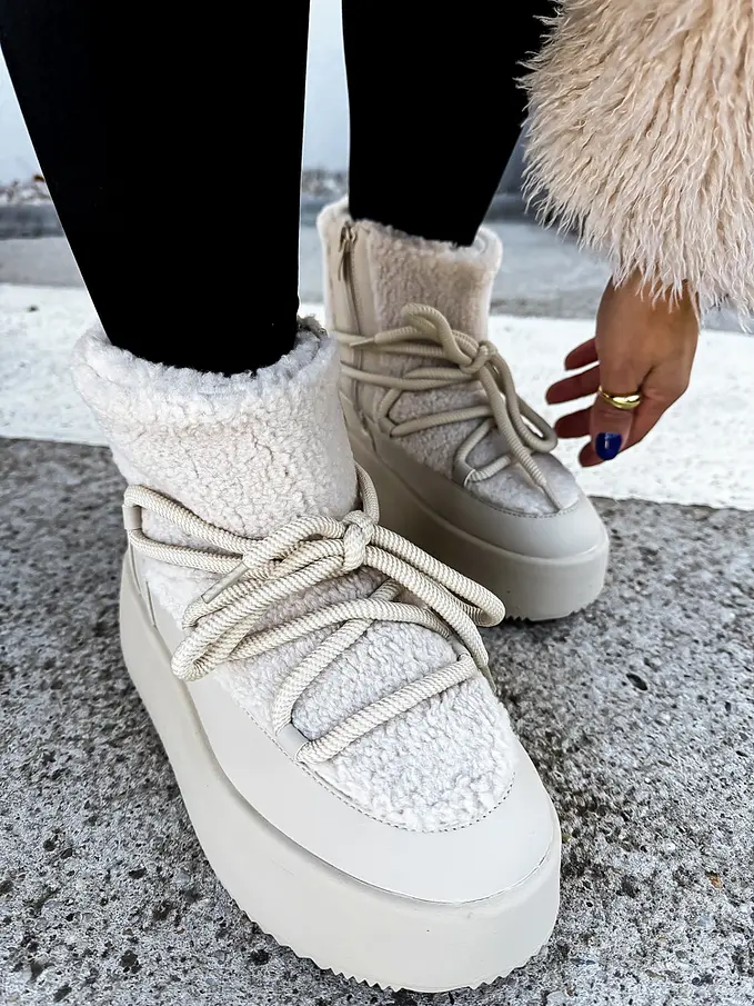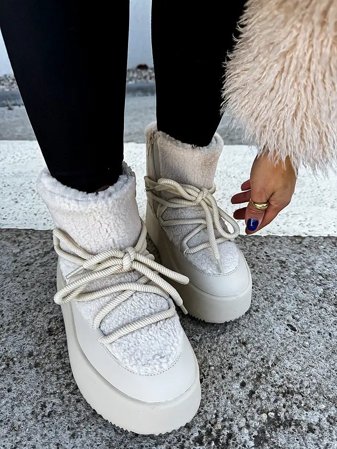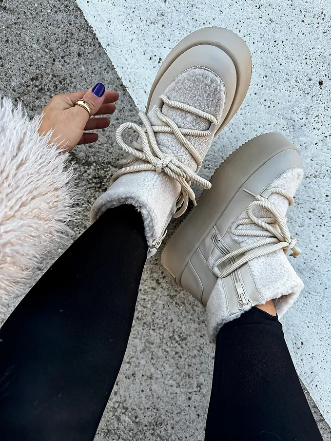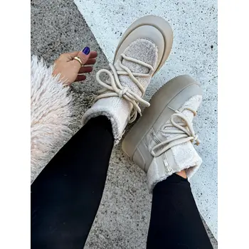 Béžové členkové šnúrovacie čižmy SEVYNA+