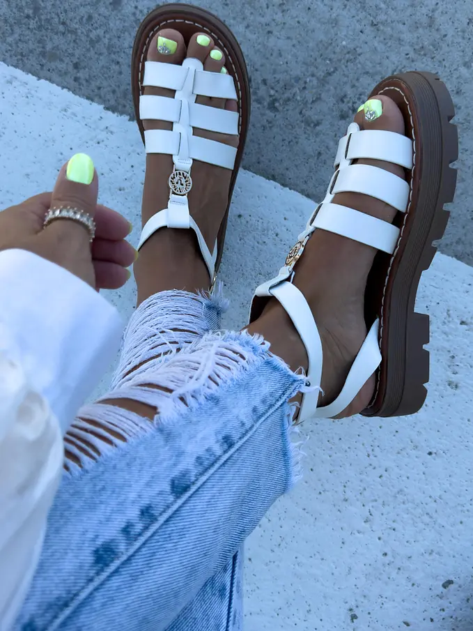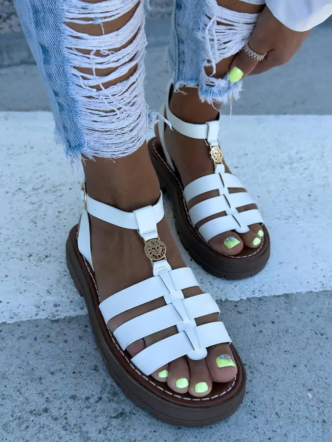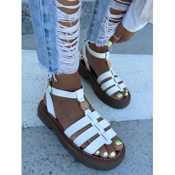 Biele sandále so zlatou ozdobou ROMANA-