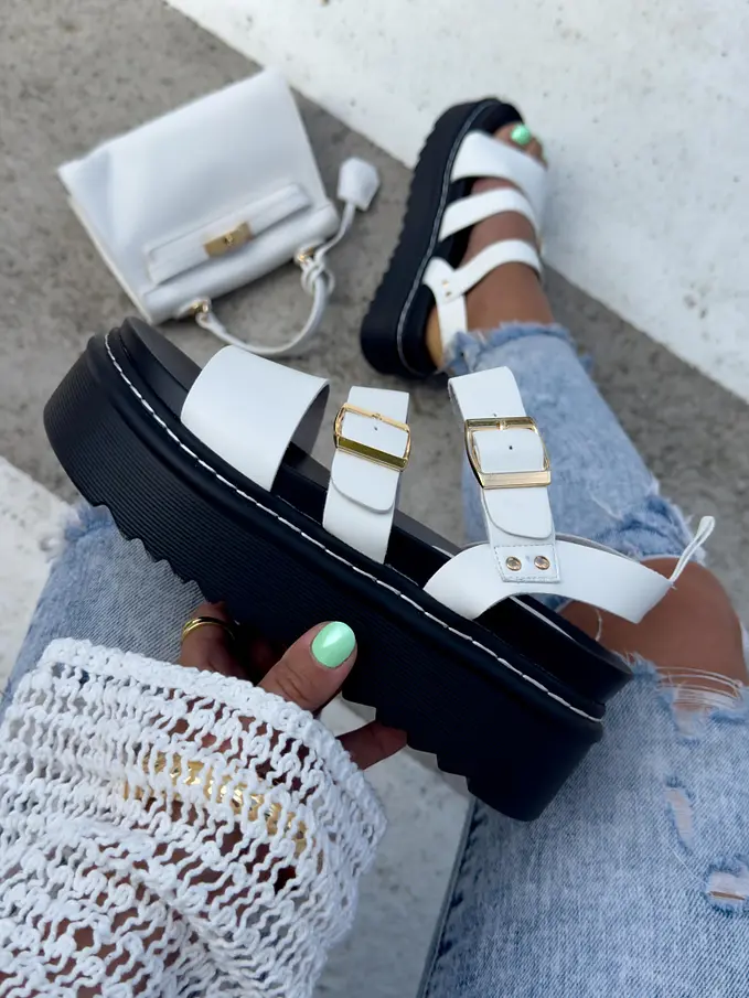 Biele sandále zo zlatými aplikáciami CLOVER-