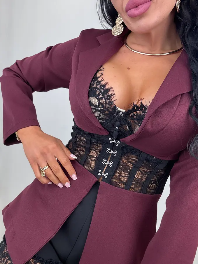 Bordové sako s čipkou AIKO