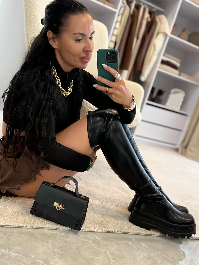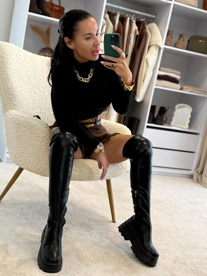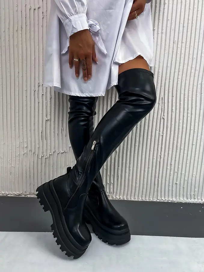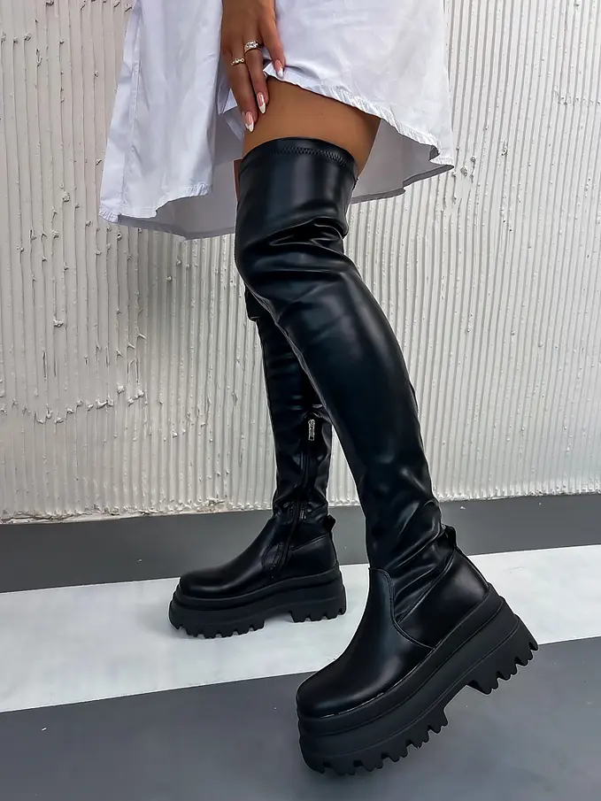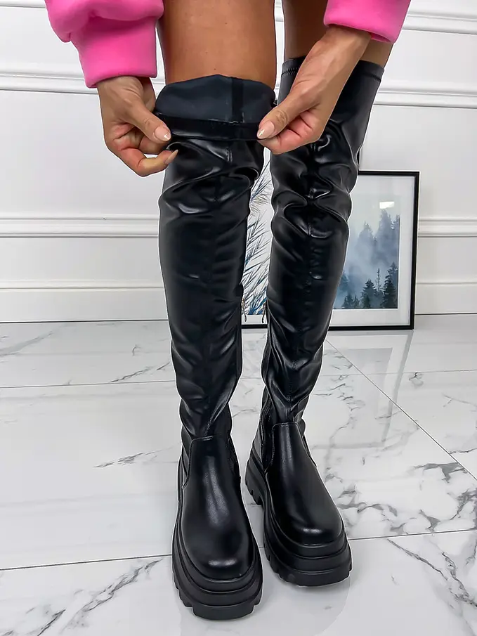 Čierne čižmy nad kolená SHEIRA-