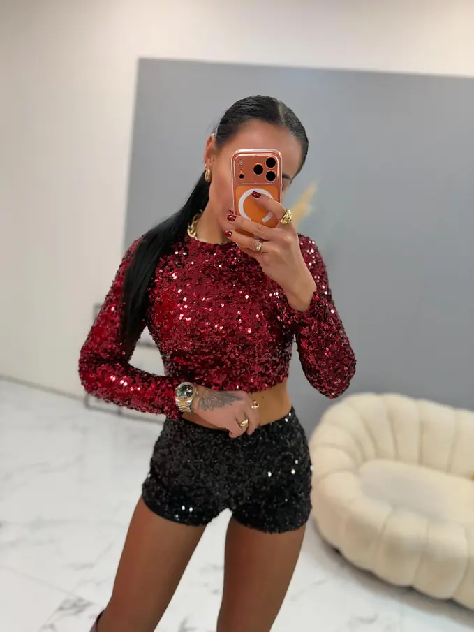 Dámske flitrované šortky. Látka je elastická.