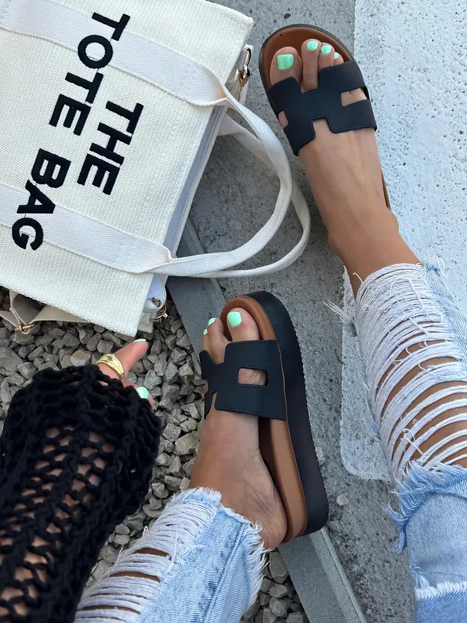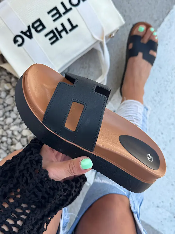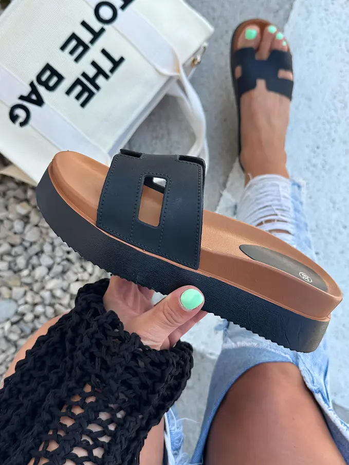 Čierne platformové šľapky LUNNA-
