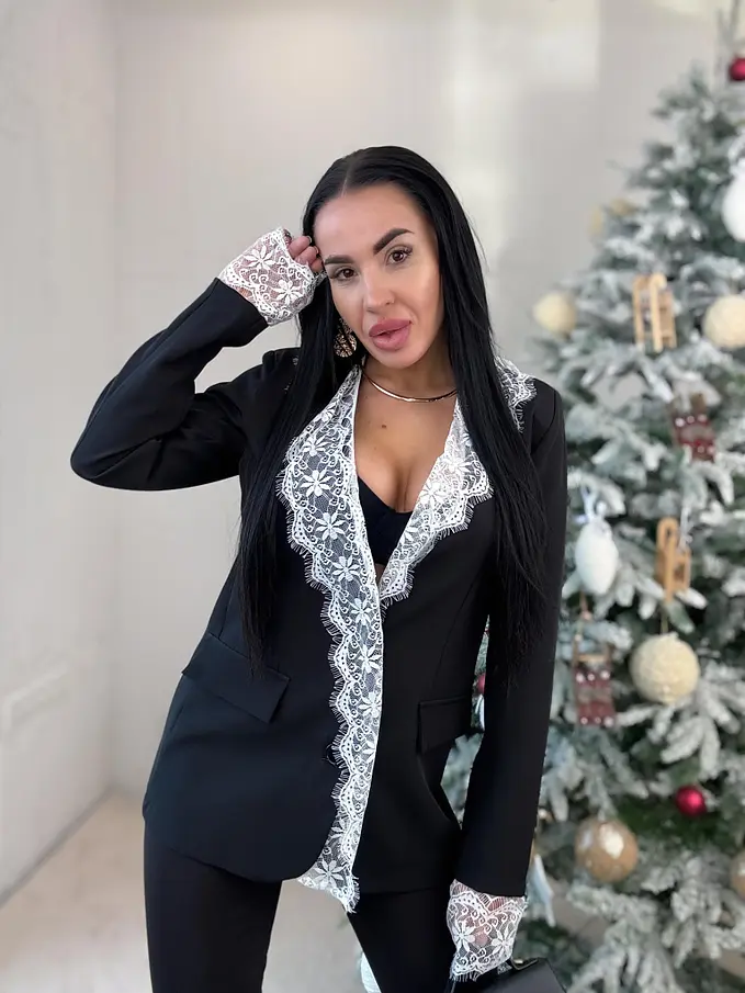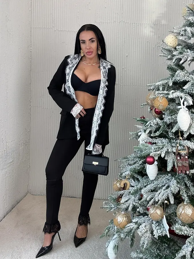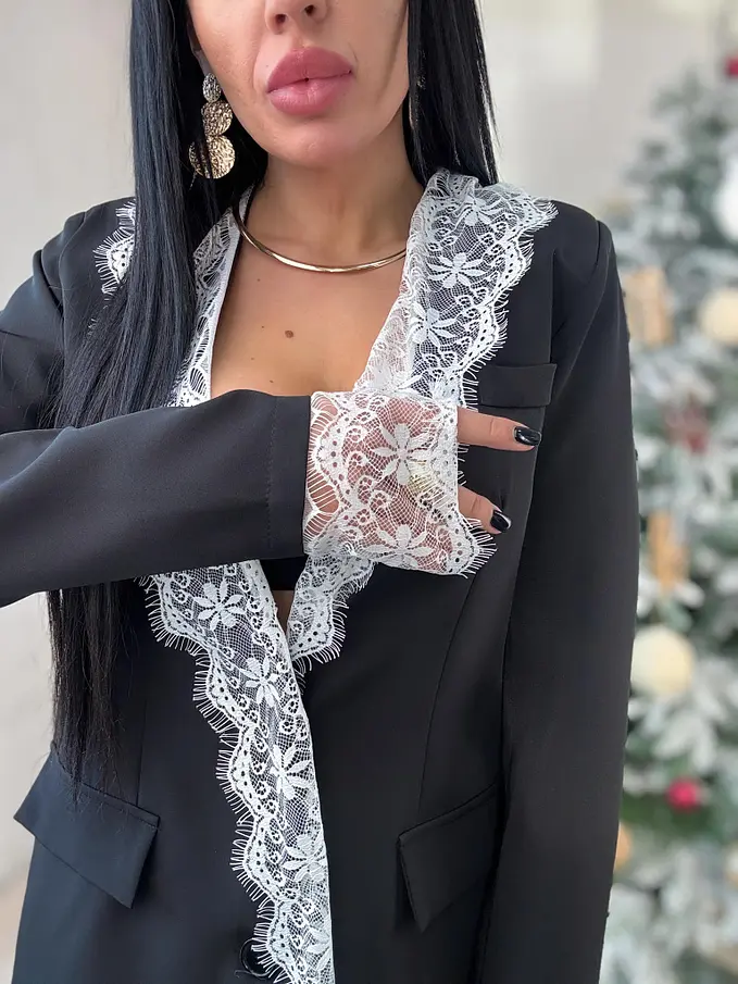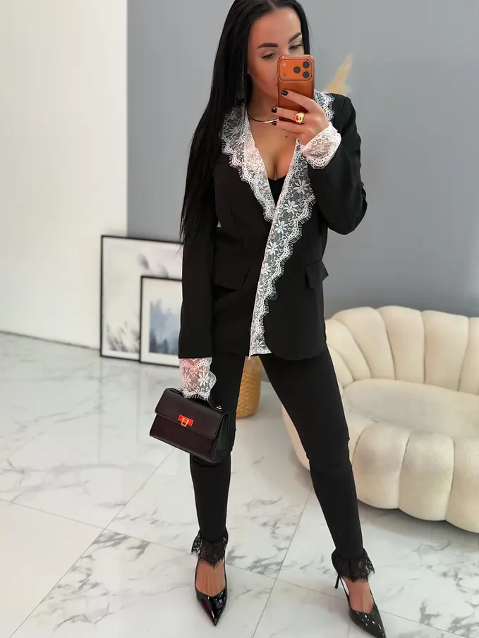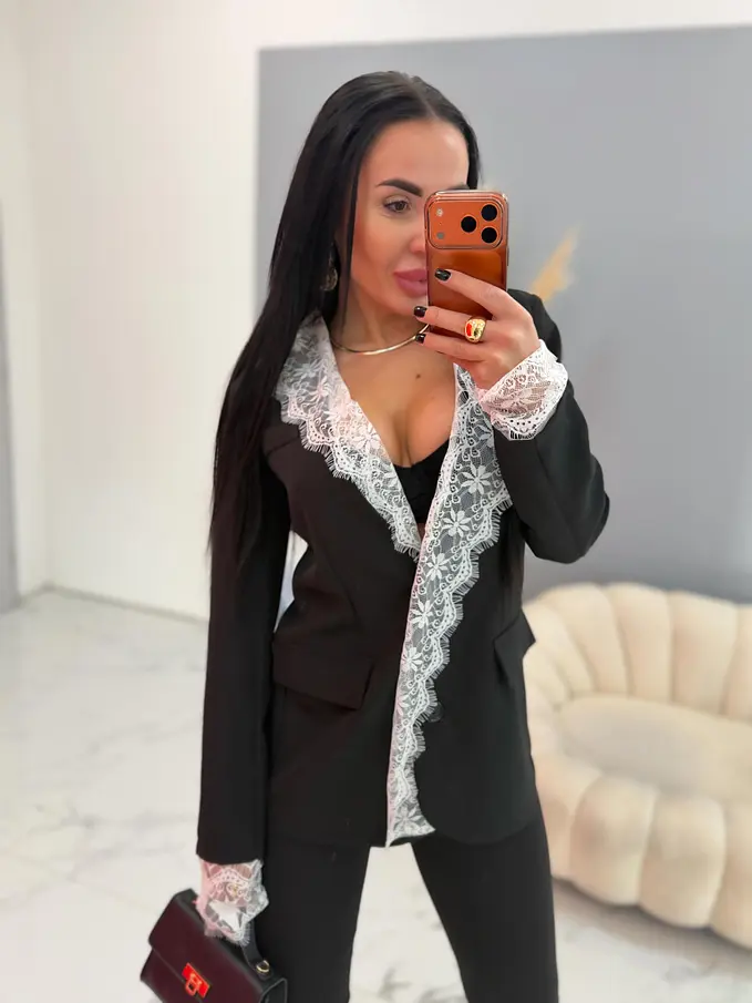 Čierne sako s bielou čipkou MILAYA