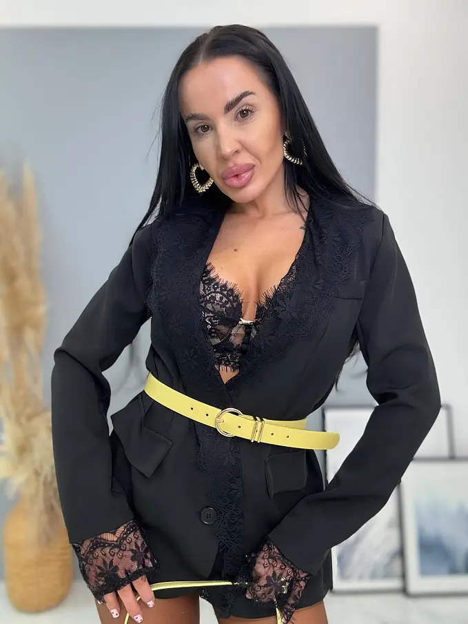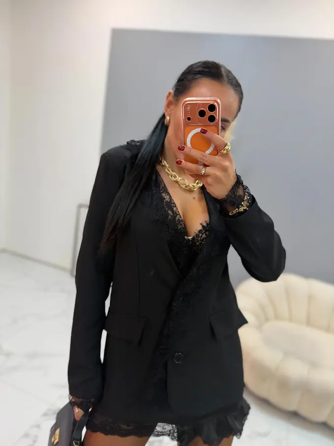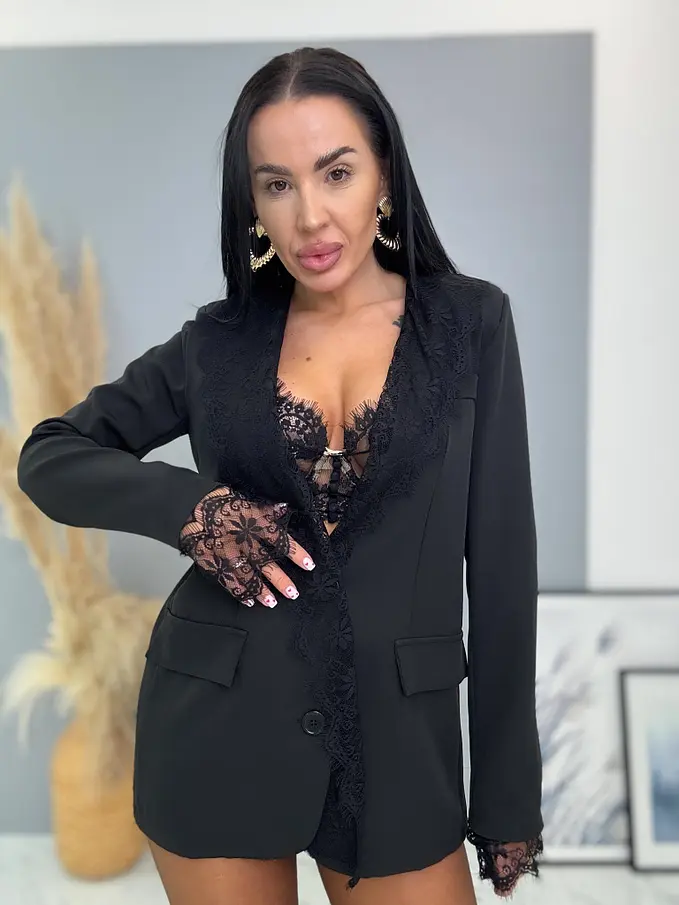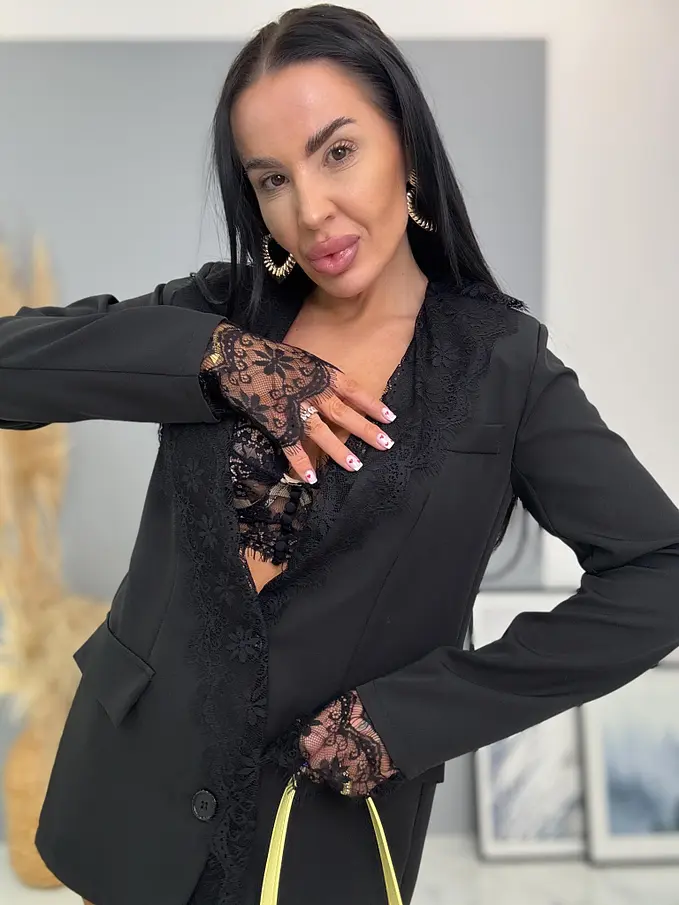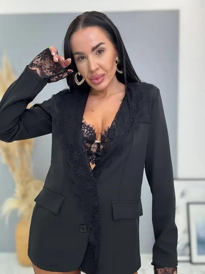 Čierne sako s čiernou čipkou MILAYA