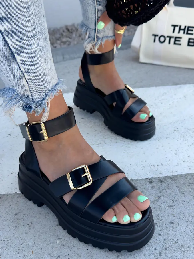 Čierne sandále zo zlatými aplikáciami SHENAYA-