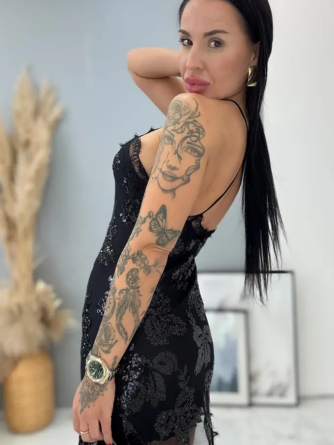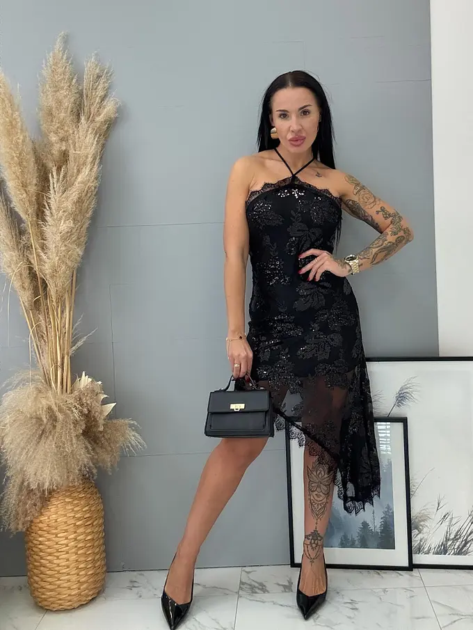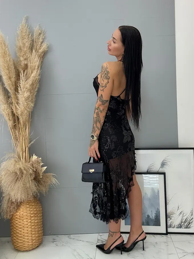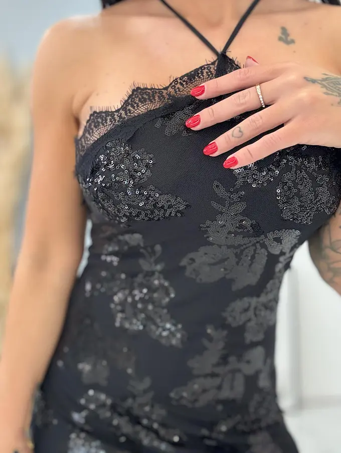 Čierne šifónové šaty zdobené flitrami AUDRIE