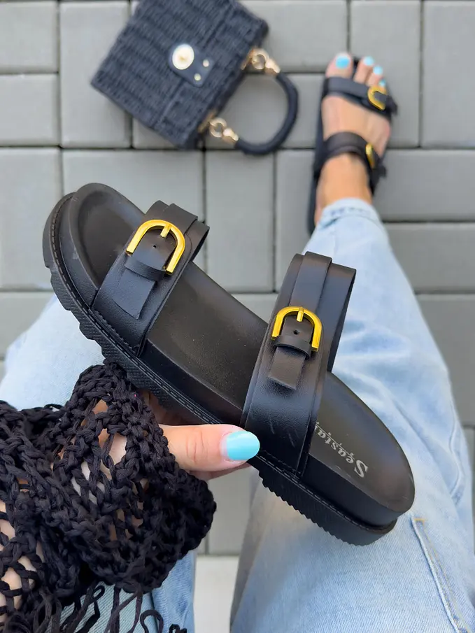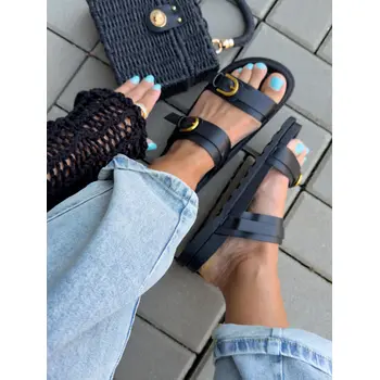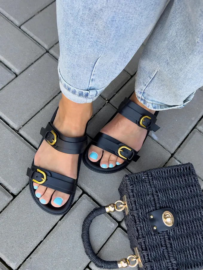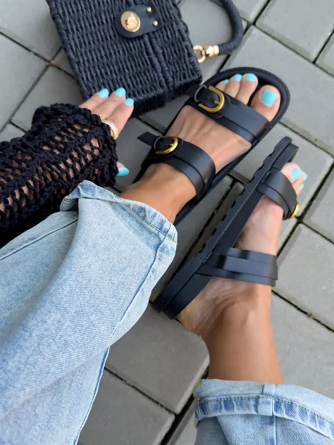 Čierne šľapky so zlatou ozdobou MARCIA-