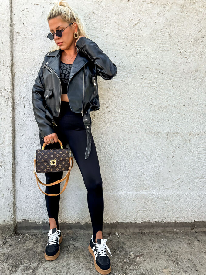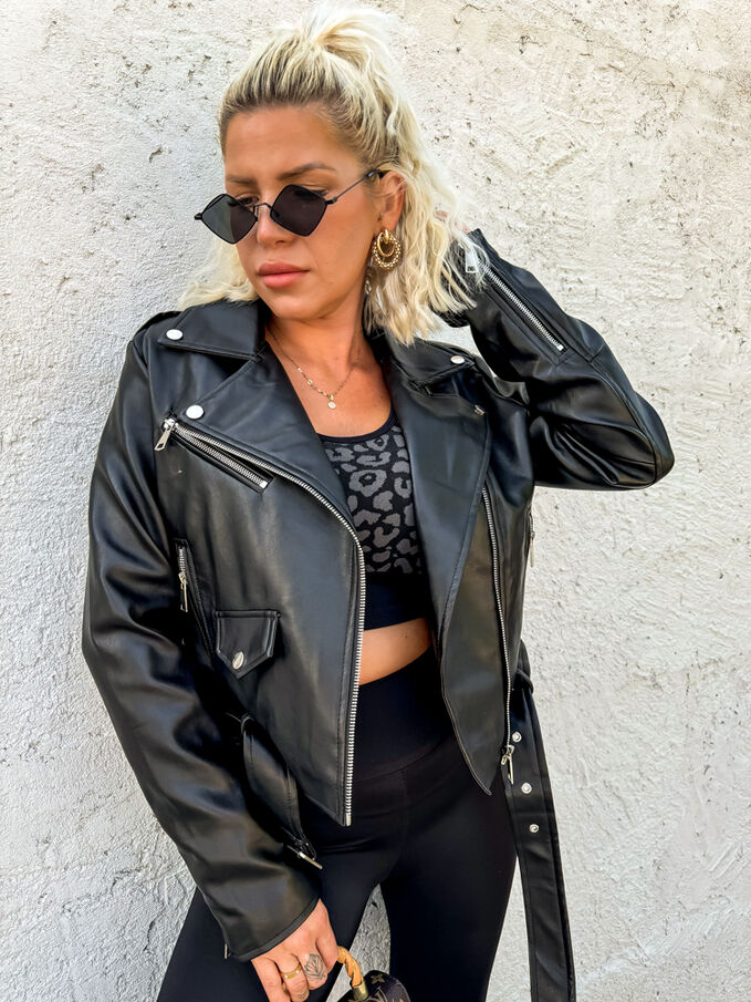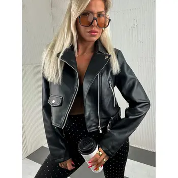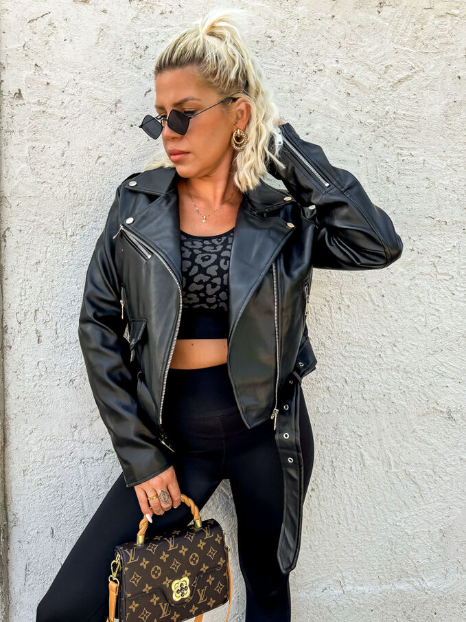 Dámsky koženkový kabát z príjemného materiálu. Materiál nie je elastický. Detaily majú striebornú farbu.