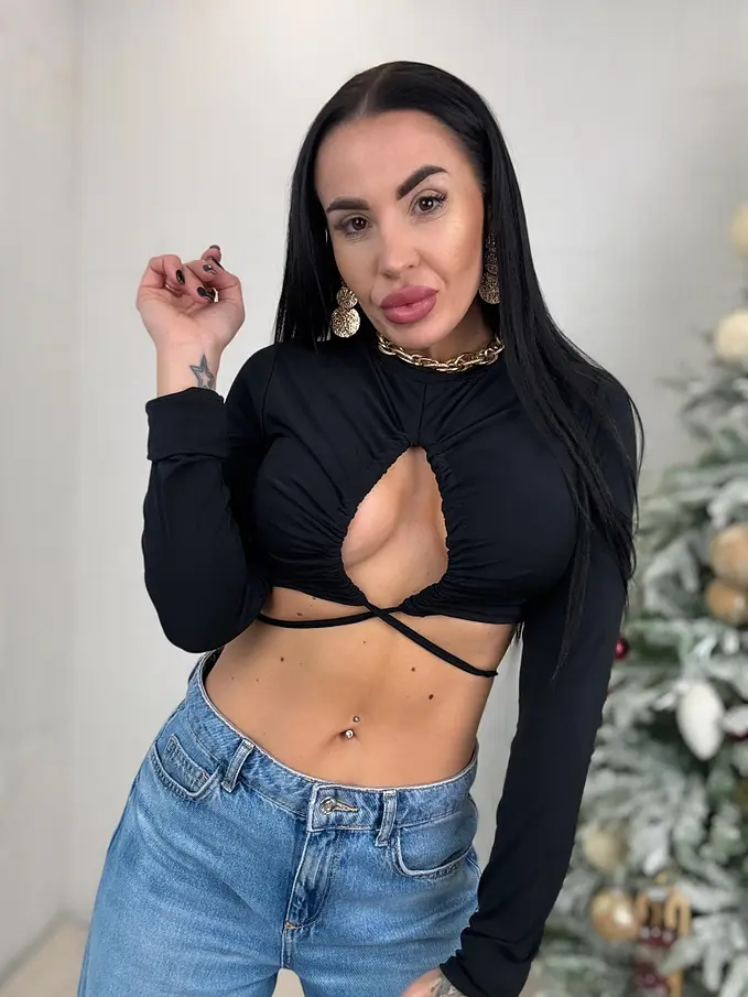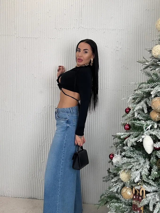 Modelka čiernovláska meria 164 cm a váži 57 kg.