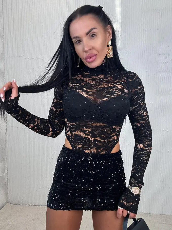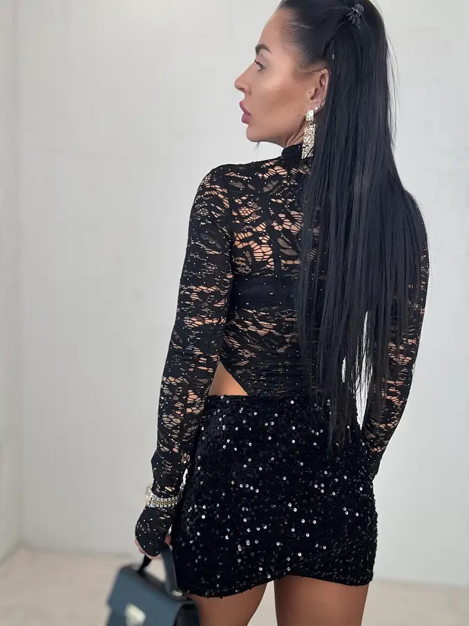 Čipkované trblietavé body so sukňou s flitrami AMBRE