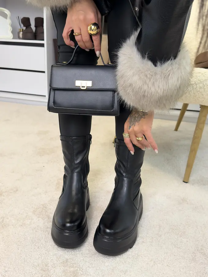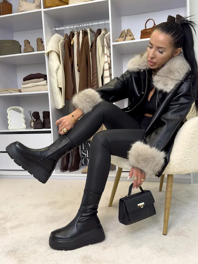 Štýlová aj v sychravom počasí? Čižmy perfektne doplnia napríklad slim džínsy a vestu z kožušinky.