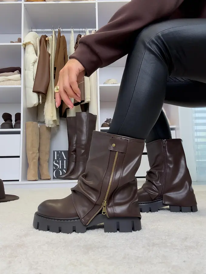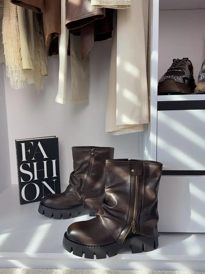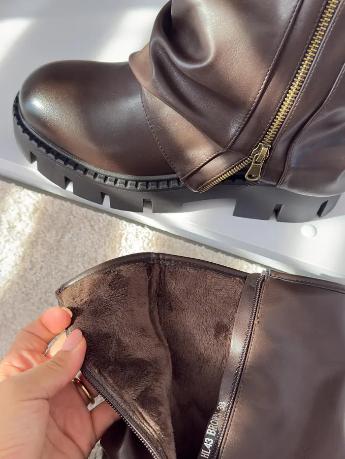 Štýlová aj v sychravom počasí? Čižmy perfektne doplnia napríklad slim džínsy a vestu z kožušinky.