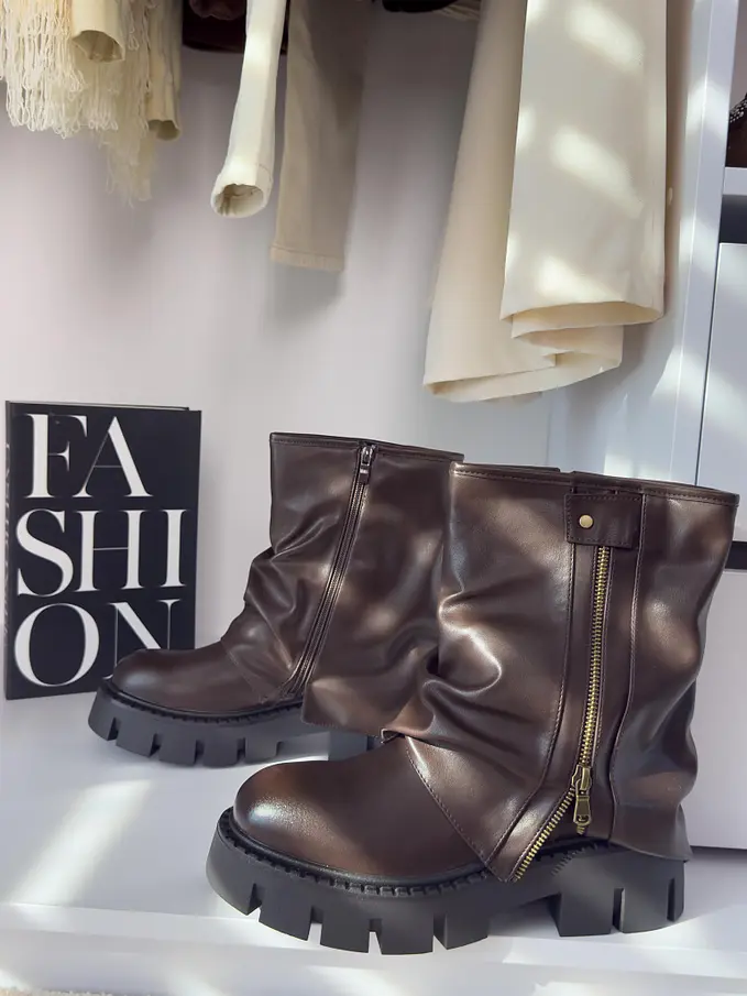 Štýlová aj v sychravom počasí? Čižmy perfektne doplnia napríklad slim džínsy a vestu z kožušinky.