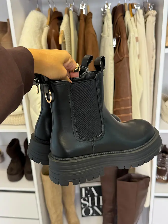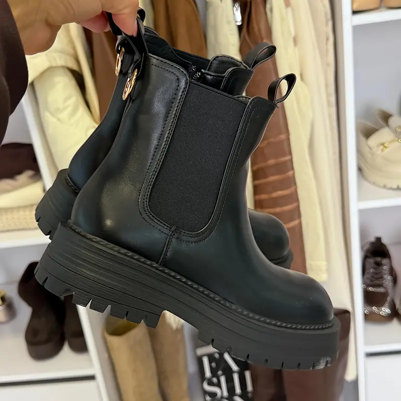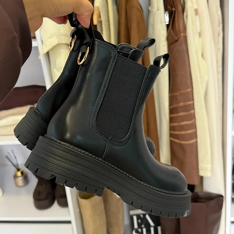Čižmy sú mierne zateplené. Ozdoba má zlatú farbu.