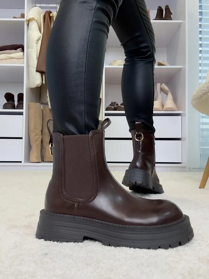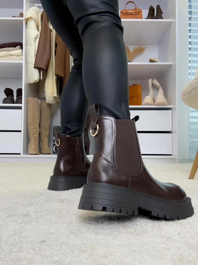 Čižmy sú mierne zateplené. Ozdoba má zlatú farbu.