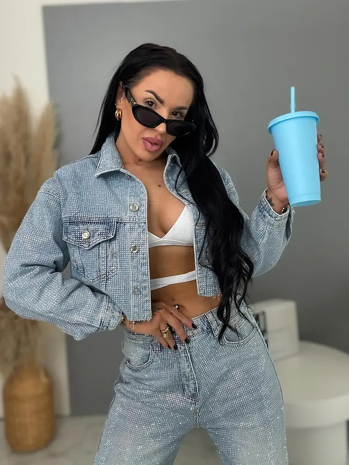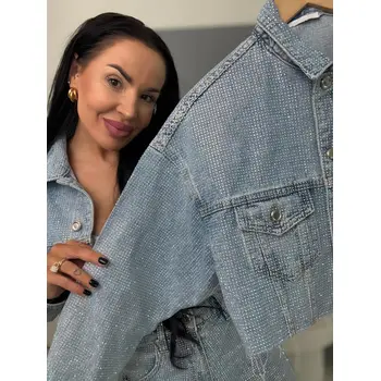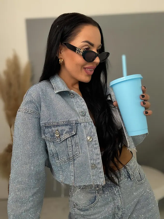Crop denim jacket s kamienkami DIAMOND BLUE