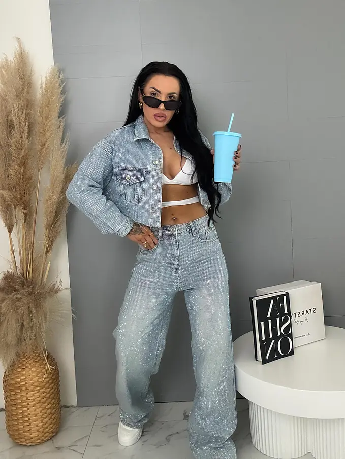Tieto moderné a štýlové rifľové bundy spájajú čistý dizajn s výraznými detailmi. Starostlivo osadené, odolné kamienky dodávajú jedinečný, trblietavý vzhľad, zatiaľ čo klasický denim materiál zaručuje pohodlné nosenie počas celého dňa.