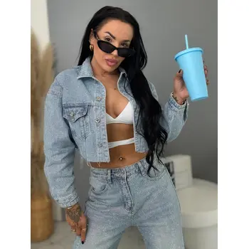 Crop denim jacket s kamienkami RAINBOW DIAMANT