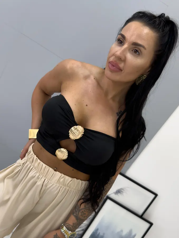 Crop-top je vyrobený z príjemného minimálne elastického materiálu. Odporúčame len pre veľkosti XS a S.