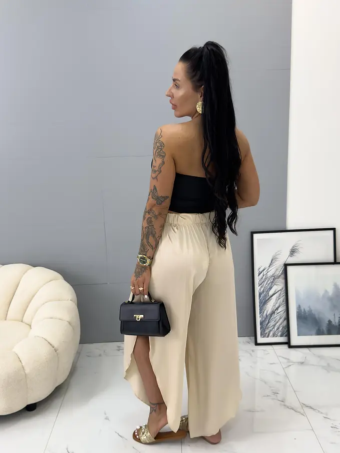 Modelka čiernovláska meria 164 cm a váži 64 kg. Nosí veľkosť M/L. Miery: 99 cm - 74 cm - 93 cm.