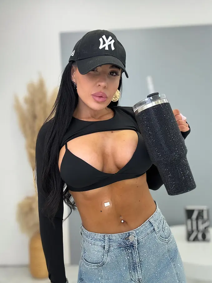 Crop-top je vyrobený z príjemného elastického materiálu a s vypchávkami. Nie je spolušité a má otvor na palec.