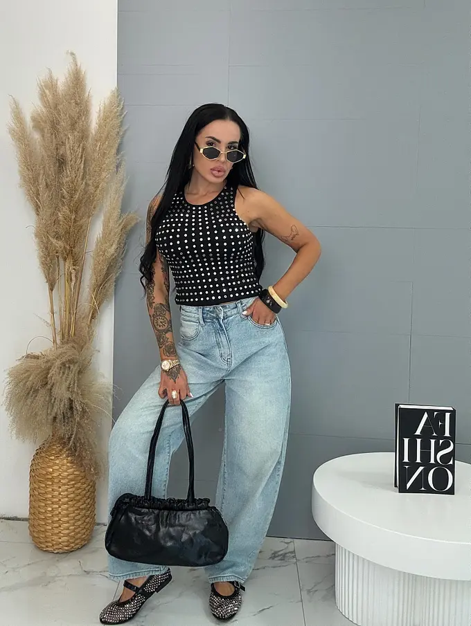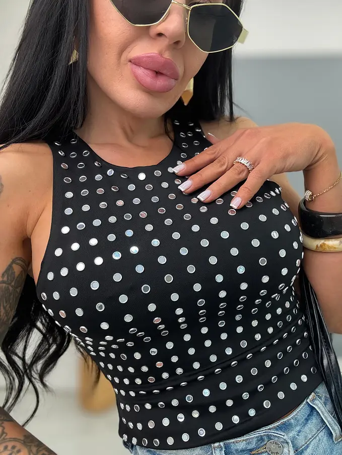 Crop-top so striebornými nitmi BLANCA