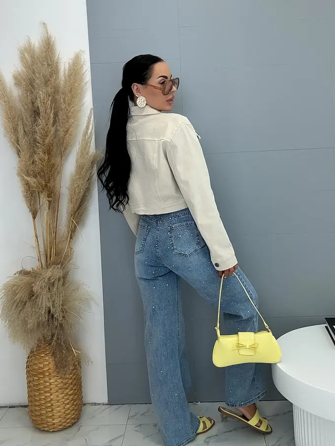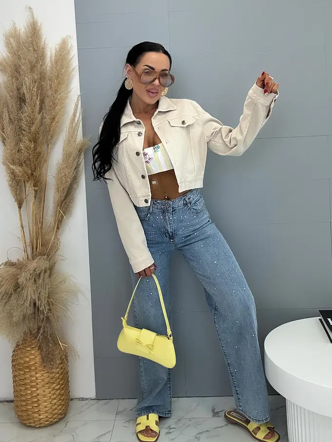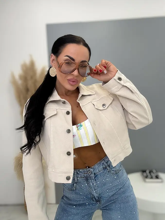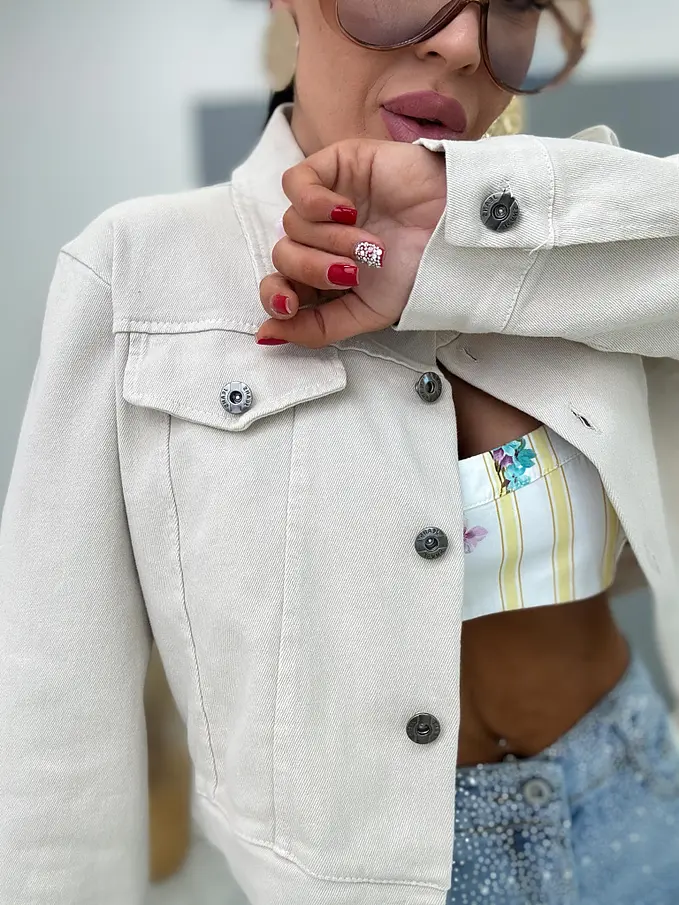 Dámsky denim bunda, priamo z Talianska. Materiál je príjemný, a mierne elastický. Gombíky majú striebornú farbu.