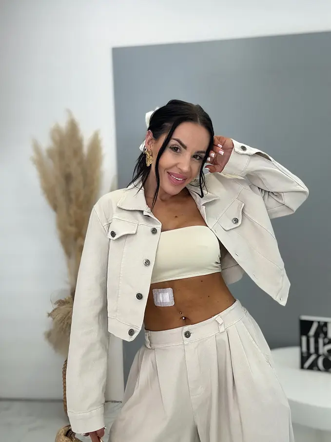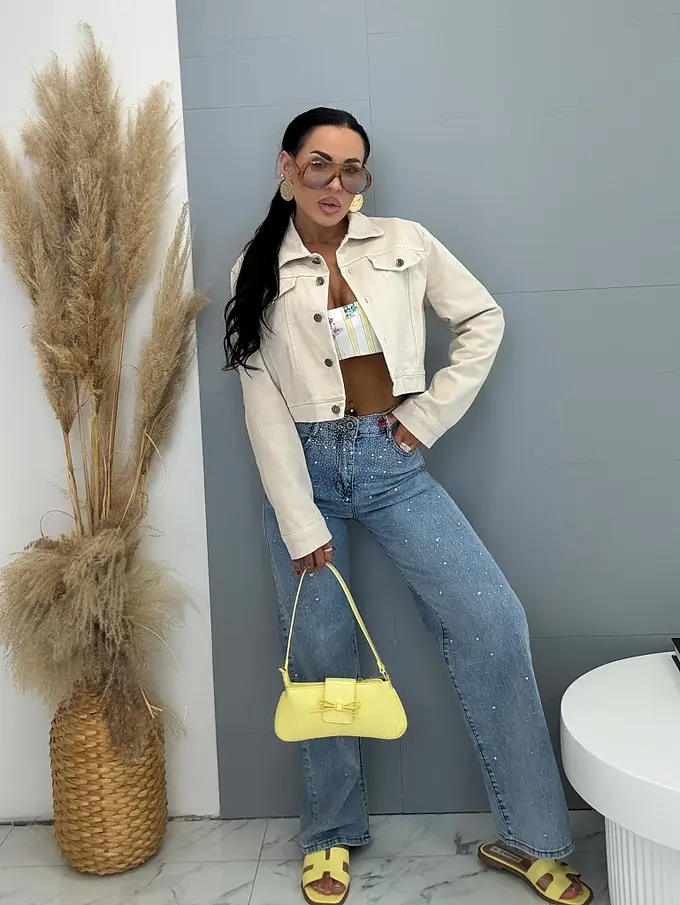 Dámsky denim bunda, priamo z Talianska. Materiál je príjemný, a mierne elastický. Gombíky majú striebornú farbu.