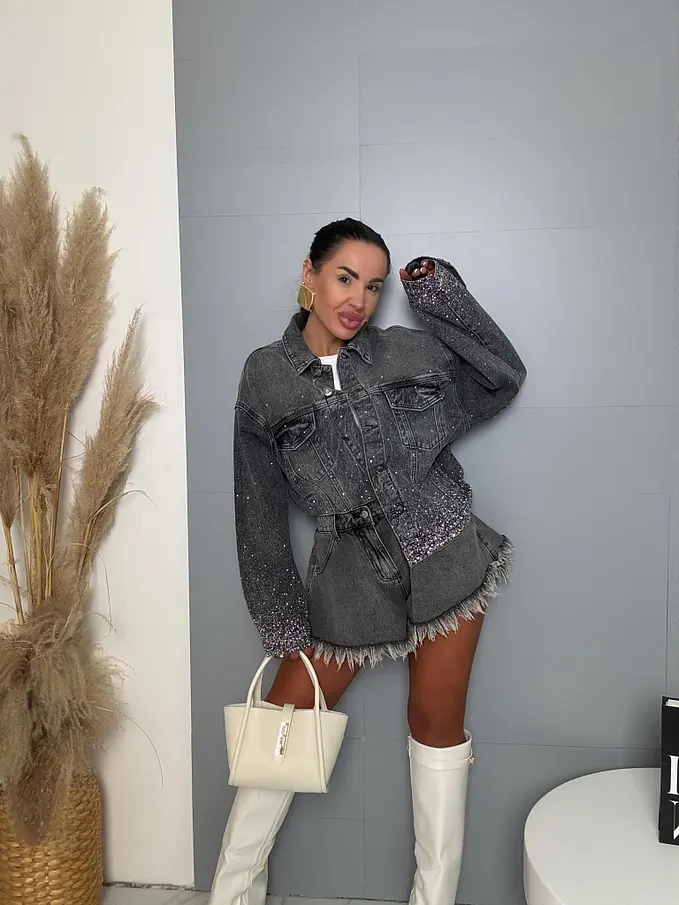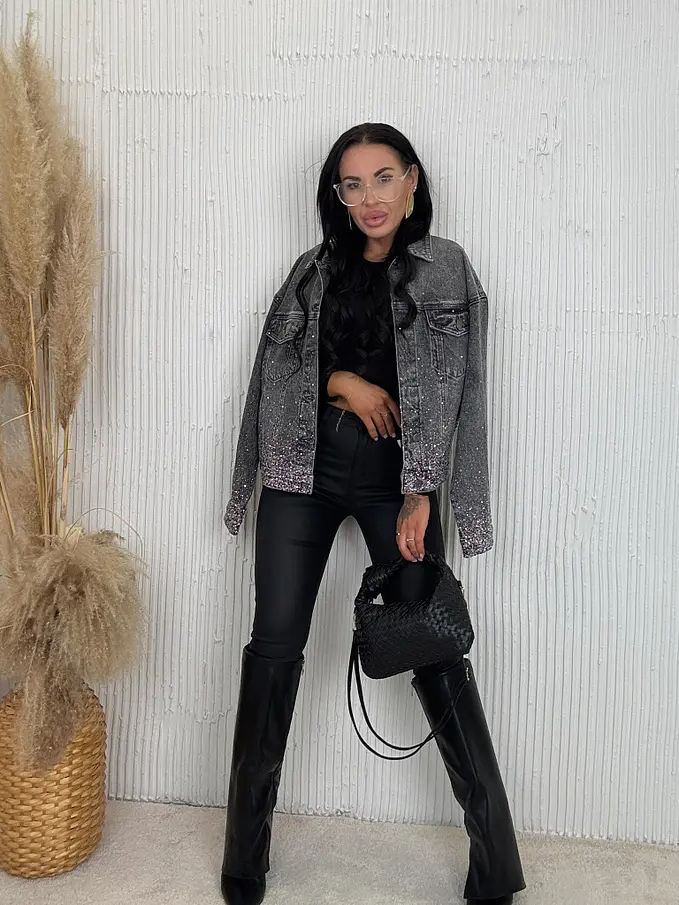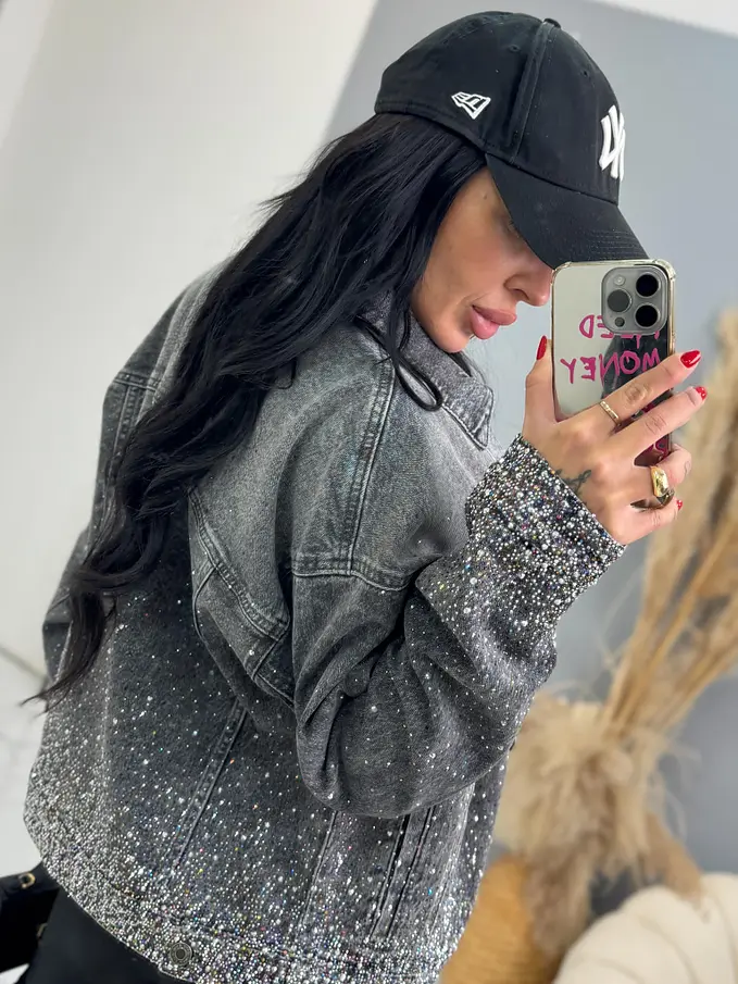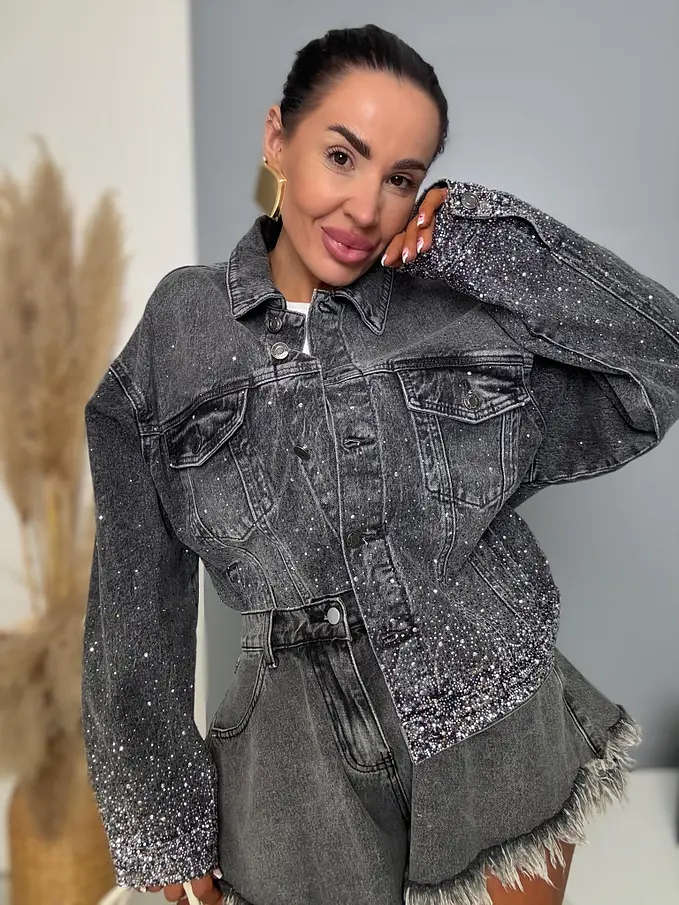 Dámska denim bunda s kamienkami SHELBY
