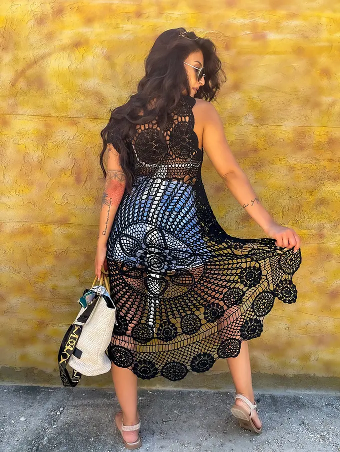 Krásna háčkovaná tunika, vzadu predĺžená.