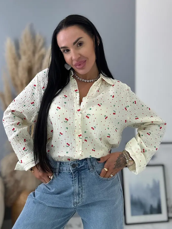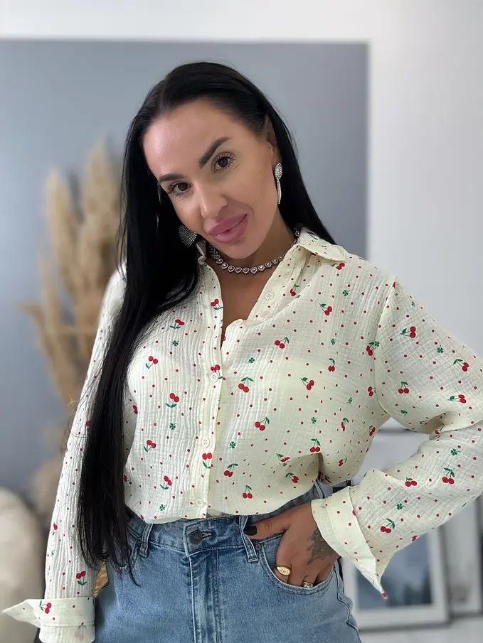 Dámska mušelínová blúzka s čerešničkami SHURI