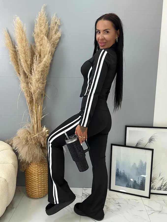 Dámsky komplet z novej kolekcie. Pozostáva z mikiny a nohavíc. Nohavice majú gumený pás. Materiál je príjemný, elastický.