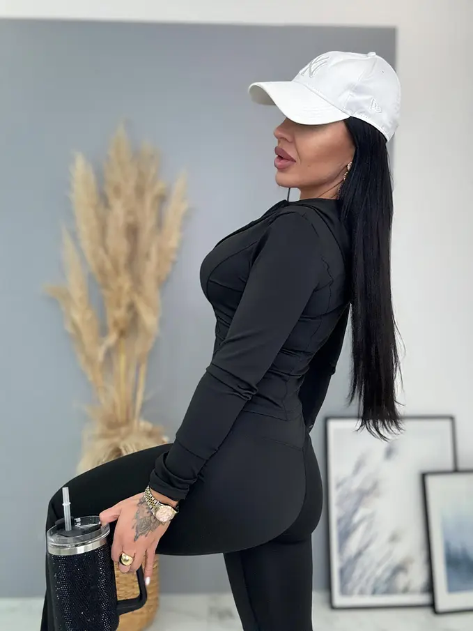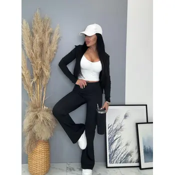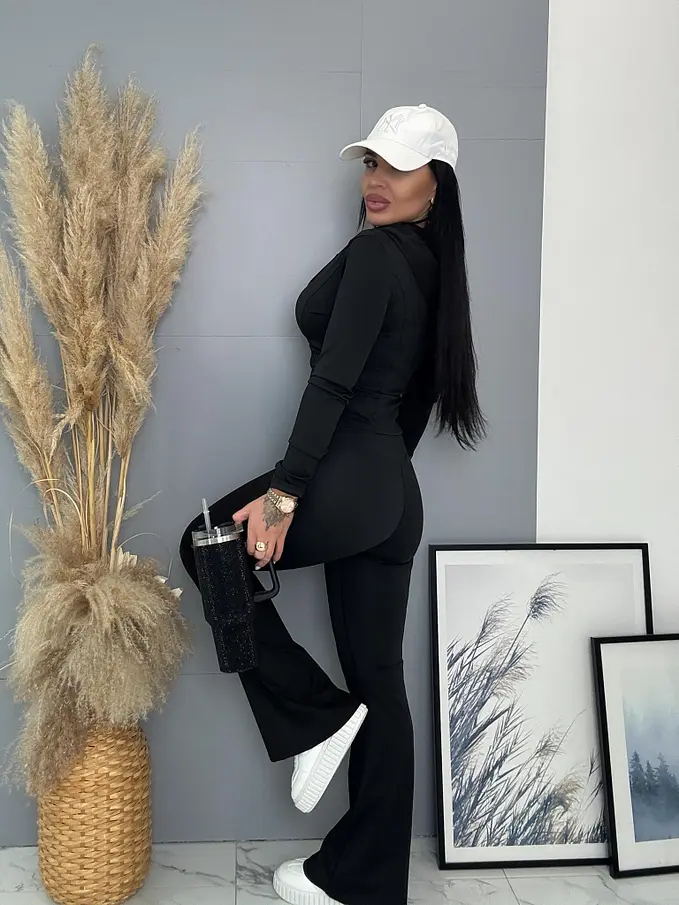 Dámsky komplet z novej kolekcie. Pozostáva z mikiny a nohavíc. Nohavice majú gumený pás. Materiál je príjemný, elastický.