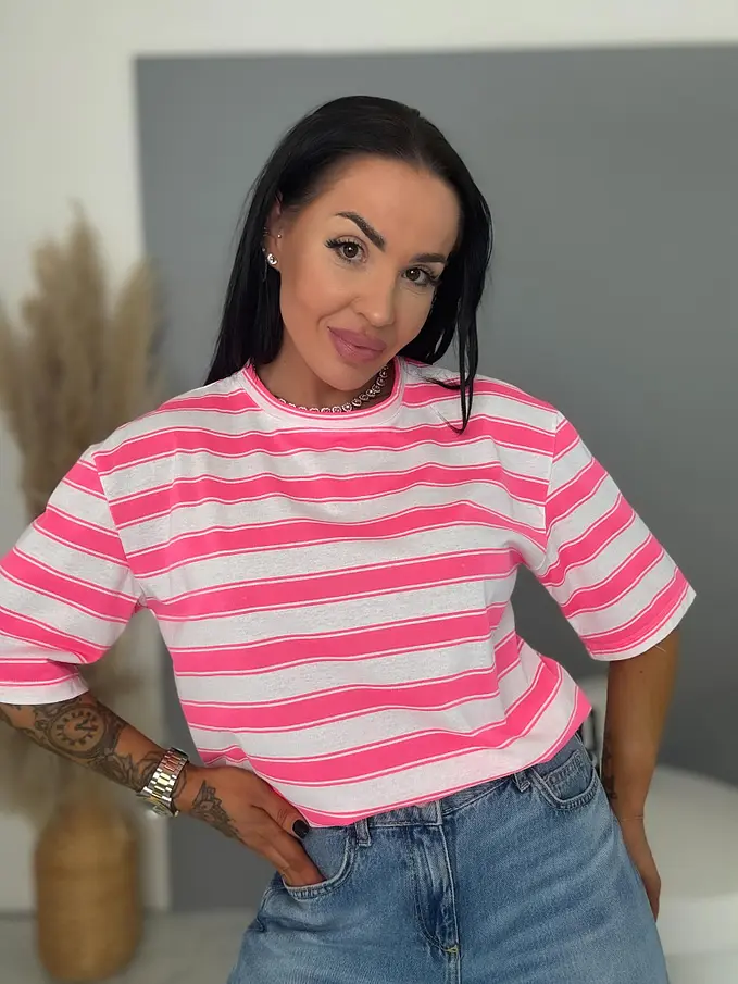Dámske pásikavé tričko s potlačou NEO STRIP