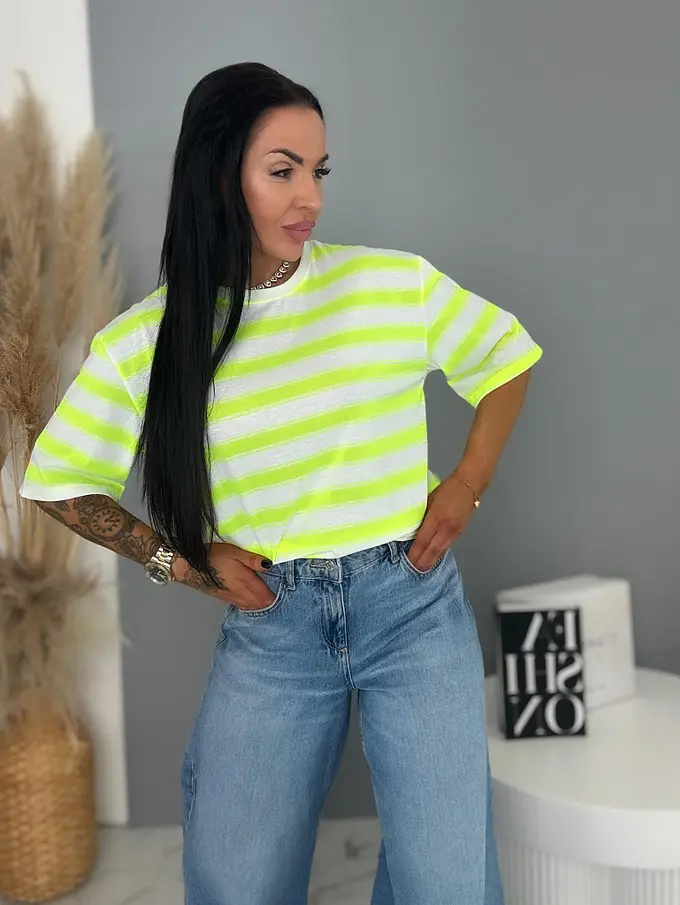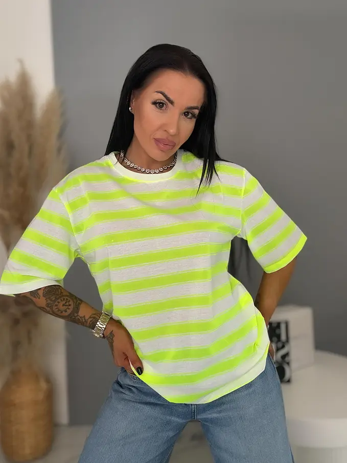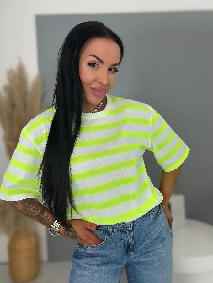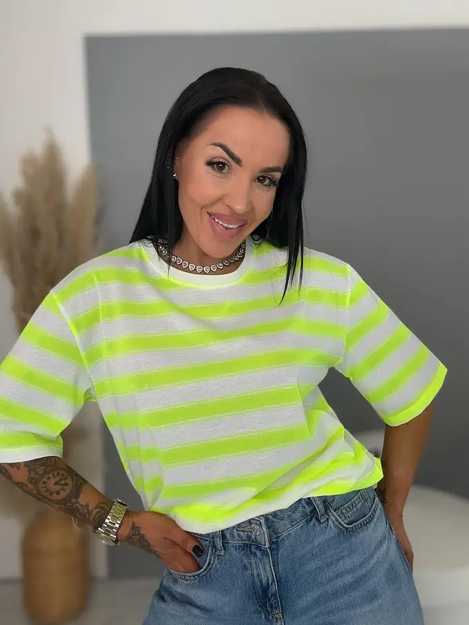 Dámske pásikavé tričko s potlačou NEO STRIP